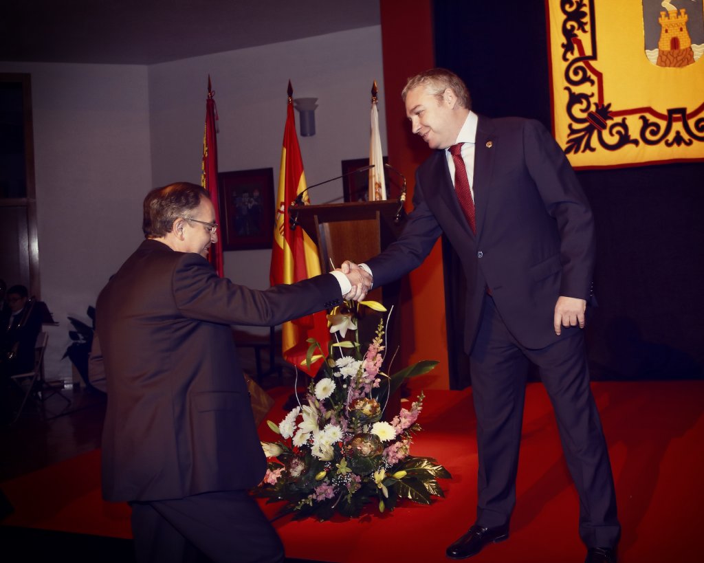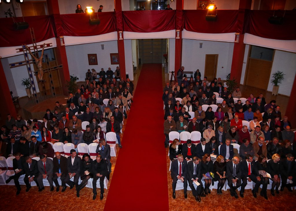 Seguidamente se dirigieron en comitiva hacia el Centro Parroquial de Mazarrón, donde dio comienzo el acto. Isidro Coy, concejal de Festejos, dio la bienvenida a todos los asistentes agradeciendo su presencia y destacó las novedades de las Fiestas Patronales. Seguidamente Ginés Campillo, Alcalde de Mazarrón, introdujo al pregonero haciendo un breve repaso de su extenso currículo.