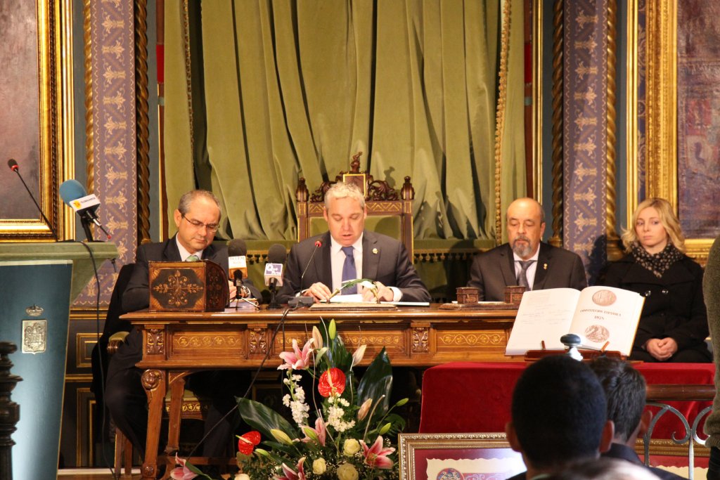 El Pleno Municipal que, como cada año, se celebra con motivo del Día de la Constitución Española tuvo en esta ocasión un carácter especial, pues durante el mismo, además de la tradicional lectura de diversos artículos de la Carta Magna por parte de los portavoces de los grupos políticos que componen el pleno, se llevó a cabo el nombramiento de Salvador Zamora Navarro como ‘Hijo Predilecto’ de Mazarrón y de Francisco Salvador Jiménez como ‘Hijo Adoptivo’ a título póstumo.