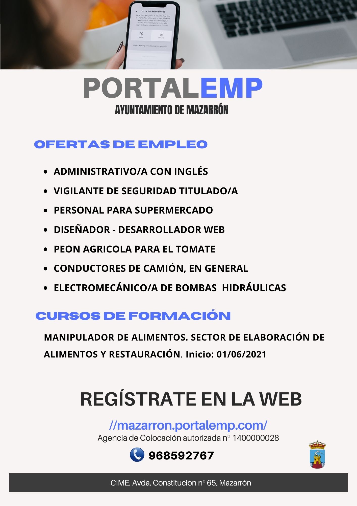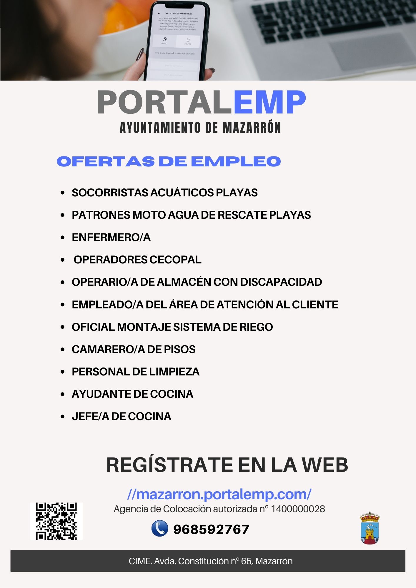 Para consultas pueden escribir a agenciadecolocacion@mazarron.es o llamar al teléfono 968592767