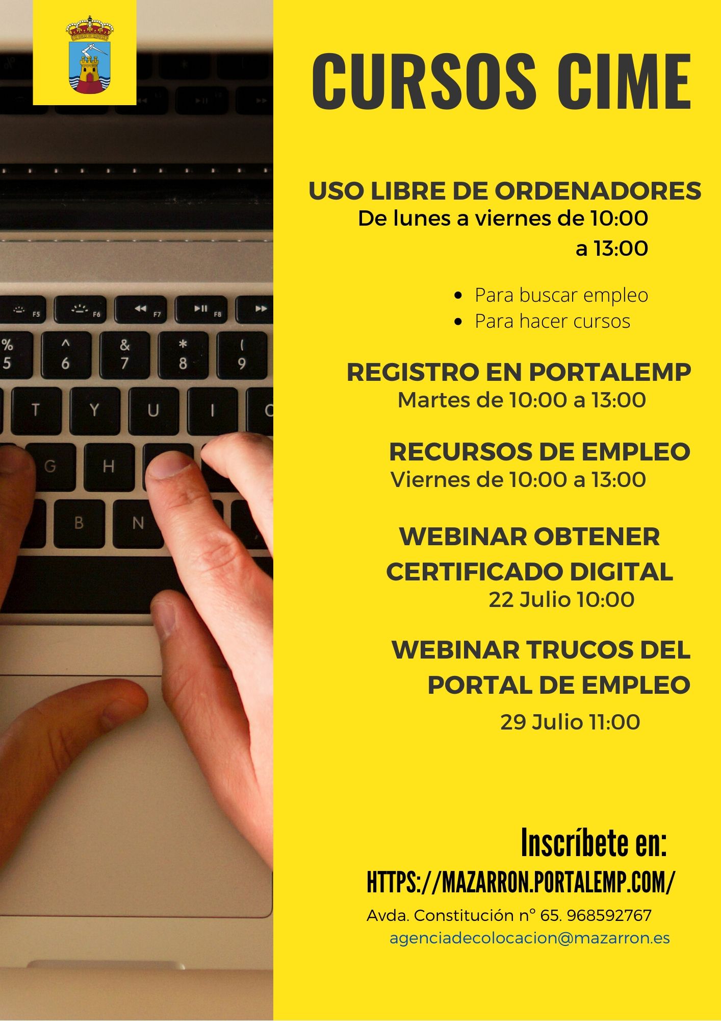 Para consultas pueden escribir a agenciadecolocacion@mazarron.es o llamar al teléfono 968592767