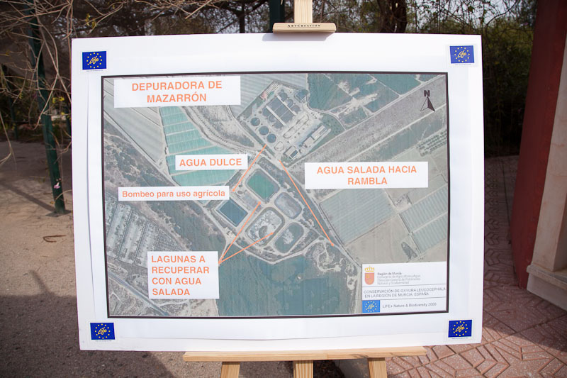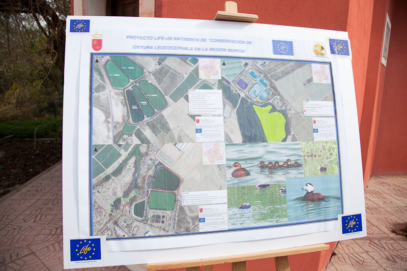 Esta visita ha servido para comprobar ‘in situ’ cómo avanza el proyecto LIFE que recientemente la Unión Europea ha concedido a la Región de Murcia. La pretensión de este ambicioso proyecto es compatibilizar la conservación de la biodiversidad con el uso agrícola; mejorar y ampliar el hábitat de la especie en estos humedales; minimizar los riesgos de incidencia sobre la malvasía y su hábitat mediante el diseño de itinerarios interpretativos, observatorios de aves y otras actuaciones que faciliten la observación de las aves y el resto de la flora y fauna con el menor impacto posible; desarrollar un programa de seguimiento de la malvasía, otras especies dependientes de estas zonas húmedas y aquellos parámetros ambientales que determinen su reproducción.