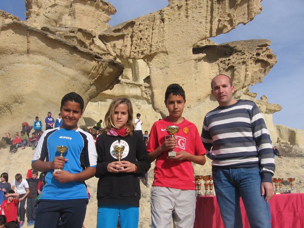 Este pasado martes se celebró en la explanada de las Erosiones de Bolnuevo la prueba de Cross Municipal encuadrada dentro de la fase municipal del programa de Deporte Escolar 2012-2013. Alrededor de 600 niños, niñas y jóvenes de los diferentes centros educativos del municipio participaron en esta competición deportiva que finalizó con la entrega de trofeos a los tres primeros clasificados de cada categoría por parte del concejal de Deportes del Ayuntamiento de Mazarrón, Andrés Valera.