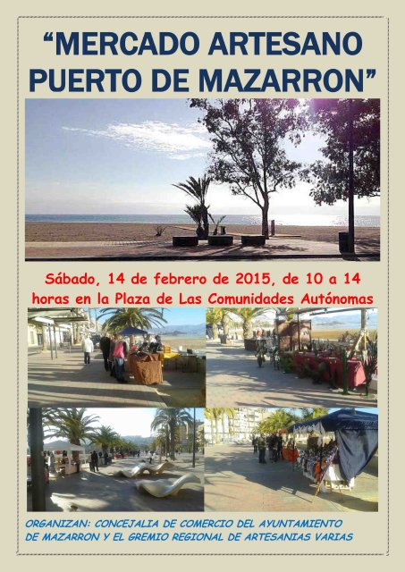 El Mercado Artesanal de Puerto de Mazarrón se viene celebrando en el Paseo Marítimo el segundo sábado de cada mes. Es organizado por el Ayuntamiento en colaboración con el gremio regional de artesanos. Se inició en noviembre de 2013 para promover el autoempleo y darle así una salida laboral a mazarroneros con dificultades. Casi un año y medio después la experiencia registra resultados muy satisfactorios.
