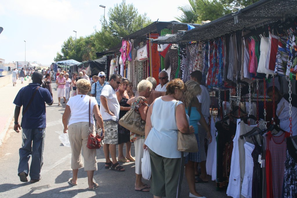 Hoy ha comenzado a funcionar el mercadillo semanal de Camposol que se celebrará todos los jueves. En total se han instalado 126 puestos de venta de todo tipo de artículos entre los que cabe destacar un gran número de puestos de fruta y hortalizas, decenas de puestos de ropa, bolsos, gafas y diversos complementos, así como de artículos para el hogar, de cerámica e incluso venta de cd's musicales. También se han instalado quioscos de comida para llevar como pollos asados, churros o perritos calientes.