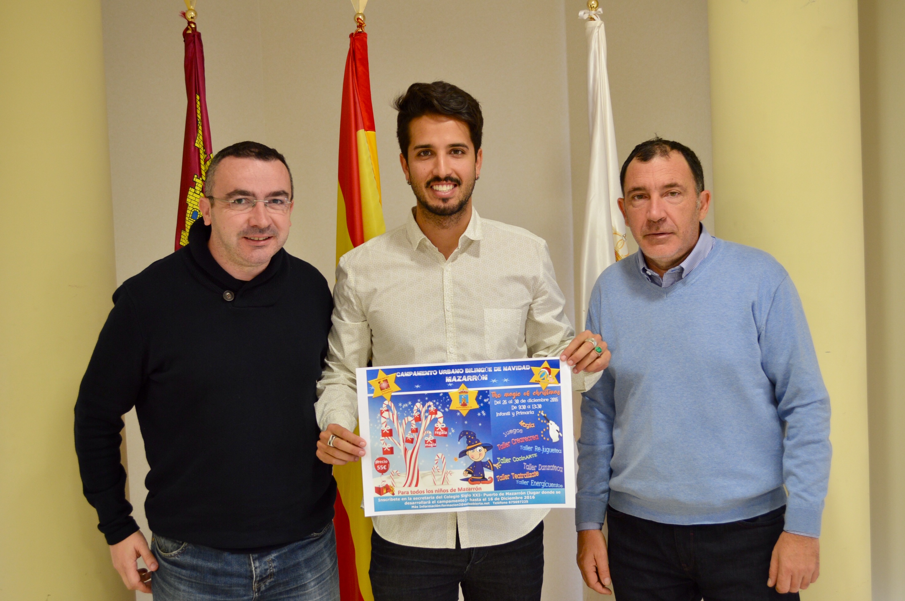 La Concejalía de Educación del Ayuntamiento de Mazarrón, en colaboración con el Colegio Siglo XXI y la empresa Aula Abierta, han programado entre el 23 y el 30 de diciembre un Campamento Urbano Bilingüe dirigido a todos los escolares del municipio de educación Infantil y Primaria. La actividad, que favorece la conciliación laboral y familiar, ha sido presentada este miércoles por el concejal de Educación, Patricio Sánchez, el director del Colegio Siglo XXI, Pedro Belchí y Julio Núñez, de Aula Abierta.