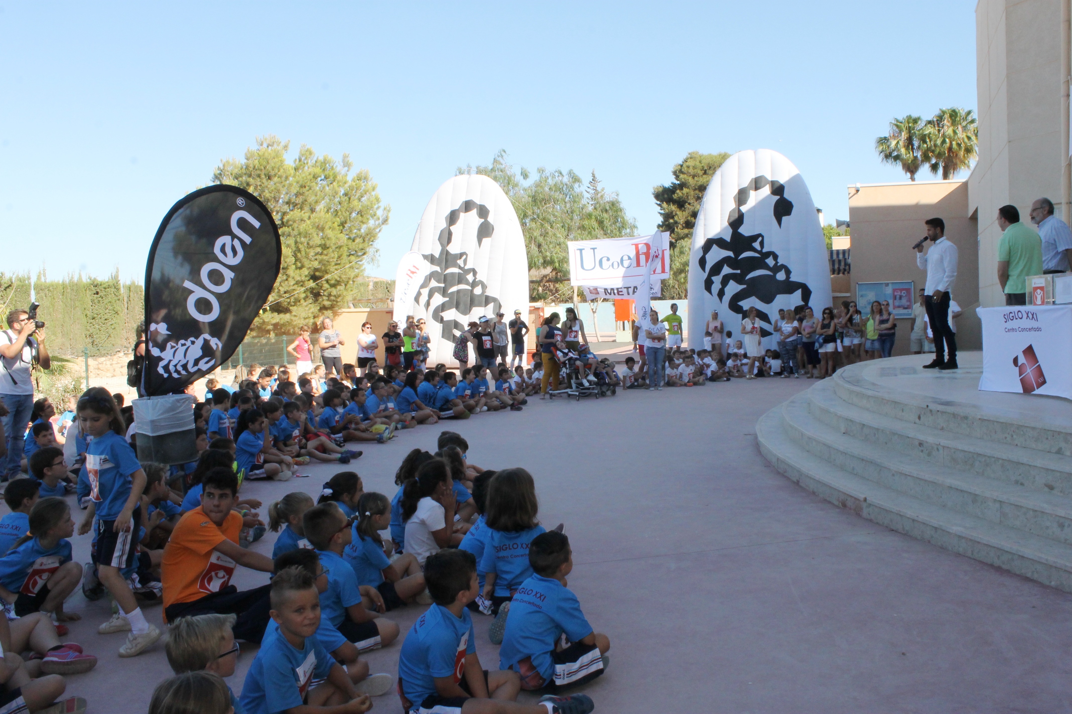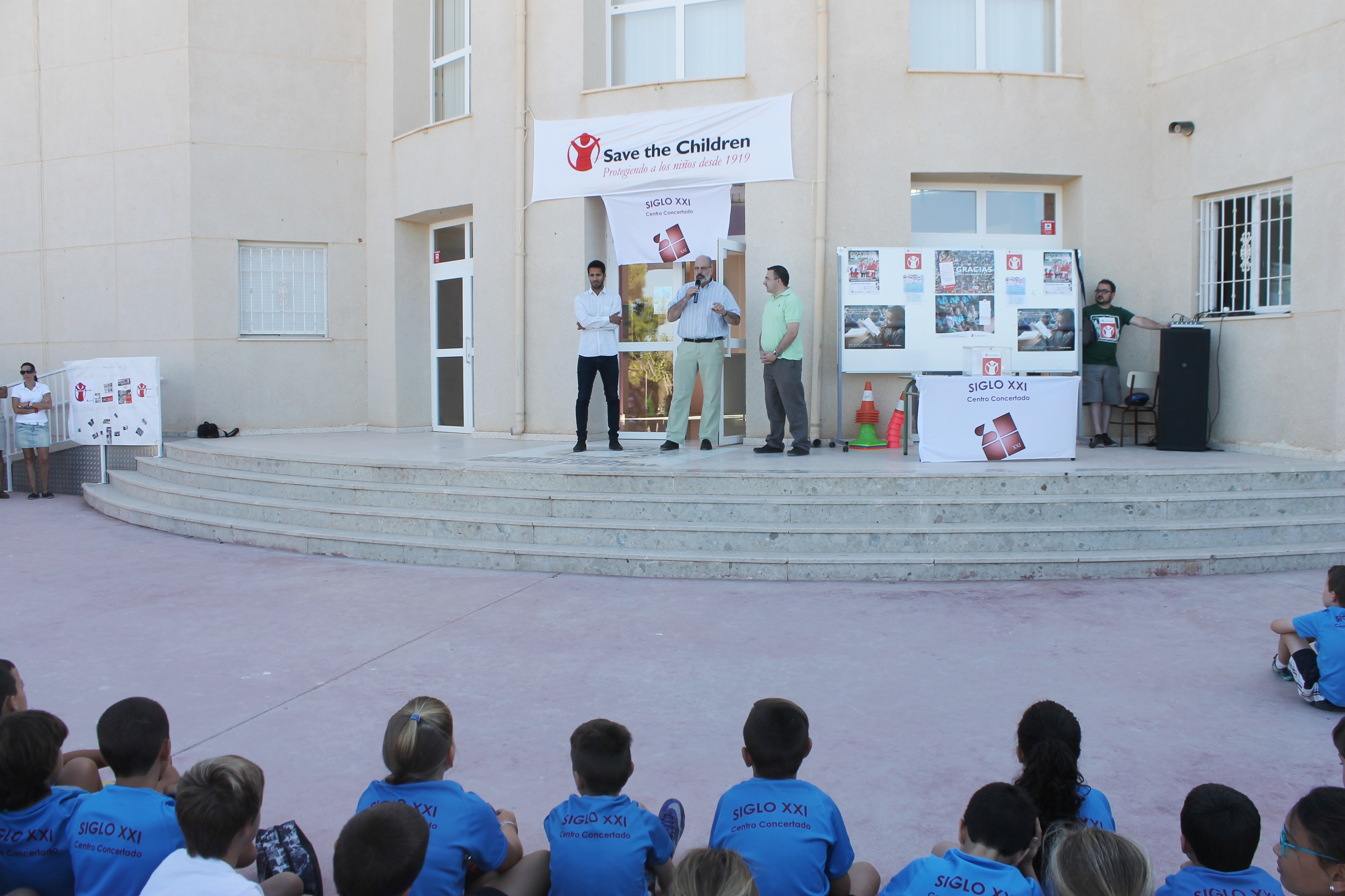 Las niñas y niños desde guardería hasta 4º de la ESO del colegio siglo XXI de Puerto de Mazarrón han participado este viernes en la IX Carrera y Acuatlón Solidarios a beneficio de “Save the children”. Antes de la prueba han recibido la noticia del nombramiento del colegio como embajador de esta ONG, distinción que compartirá con otros cinco centros educativos de la Región de Murcia.
