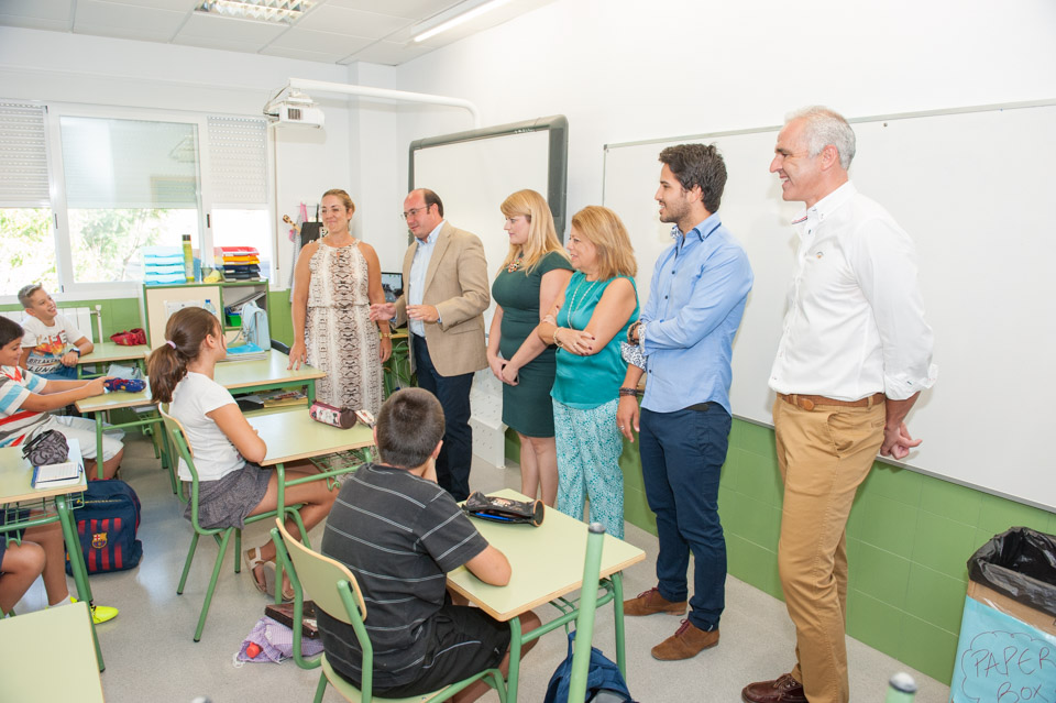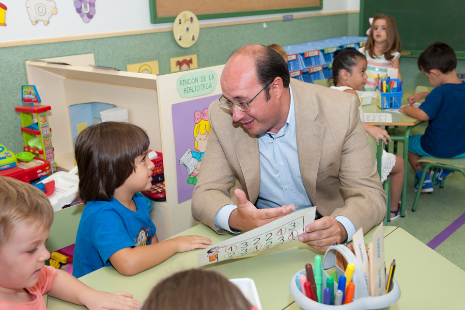 El Presidente de la Comunidad Autónoma, Pedro Antonio Sánchez, ha elegido el CEIP Infanta Leonor de Mazarrón como uno de los colegios a visitar en su ronda de contactos durante el inicio del nuevo curso escolar. Pedro Antonio Sánchez ha recorrido junto a la Consejera de Educación, María Isabel Sánchez, y la Alcaldesa de Mazarrón, Alicia Jiménez, las instalaciones de un centro que cumple su décimo curso, siendo además uno de los 250 colegios bilingües de la Comunidad Autónoma.