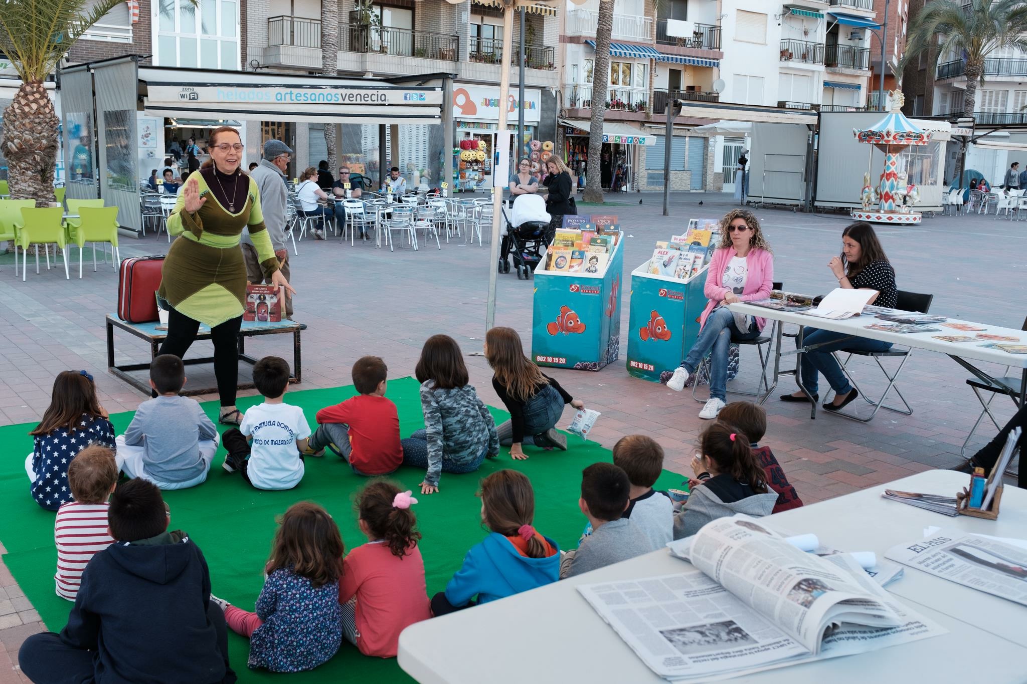 La Biblioteca municipal sale a la calle para fomentar la lectura entre los más jóvenes. La alcaldesa, Alicia Jiménez, anima a los pequeños lectores durante una jornada englobada dentro de los actos conmemorativos del Día Mundial del Libro. La actividad tuvo lugar en la tarde de este miércoles en la Plaza de las Comunidades Autónomas de Puerto de Mazarrón. Un cuentacuentos completó la agenda programada para esta cita.