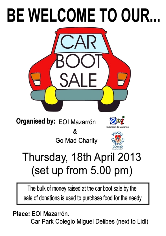 One of the main activities that will be carried out in these days will be the celebration of a “Car Boot Sale”, that consists in a solidarity market organized by the extension of Mazarrón of the EOI and the British charity established in the town “GOmaD charity”, which is helping during some years to disadvantaged social groups of Mazarrón. The organization, and also the students, will bring donated items to sell them.