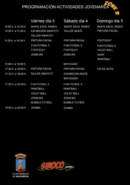 Skate, exhibiciones de graffitis, fun fútbol 5, voley ball, paintball o zumba son algunas de las actividades programadas para el próximo fin de semana, coincidiendo además con la temporada vacacional que disfrutan niños y adolescentes.