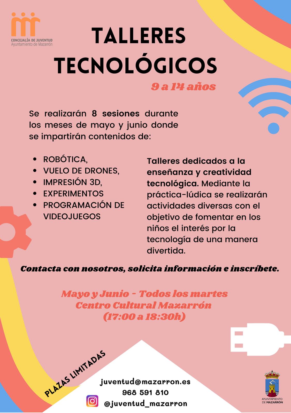 La Concejalía de Juventud ha propuesto 2 actividades para los más jóvenes, que se llevarán a cabo durante los meses de mayo y junio. Por un lado, todos los martes en horario de 17:00 a 18:30 horas, los jóvenes podrán disfrutar del taller tecnológico donde aprenderán robótica aplicada, vuelo de drones, realizarán experimentos, impresión en 3D y programarán videojuego.