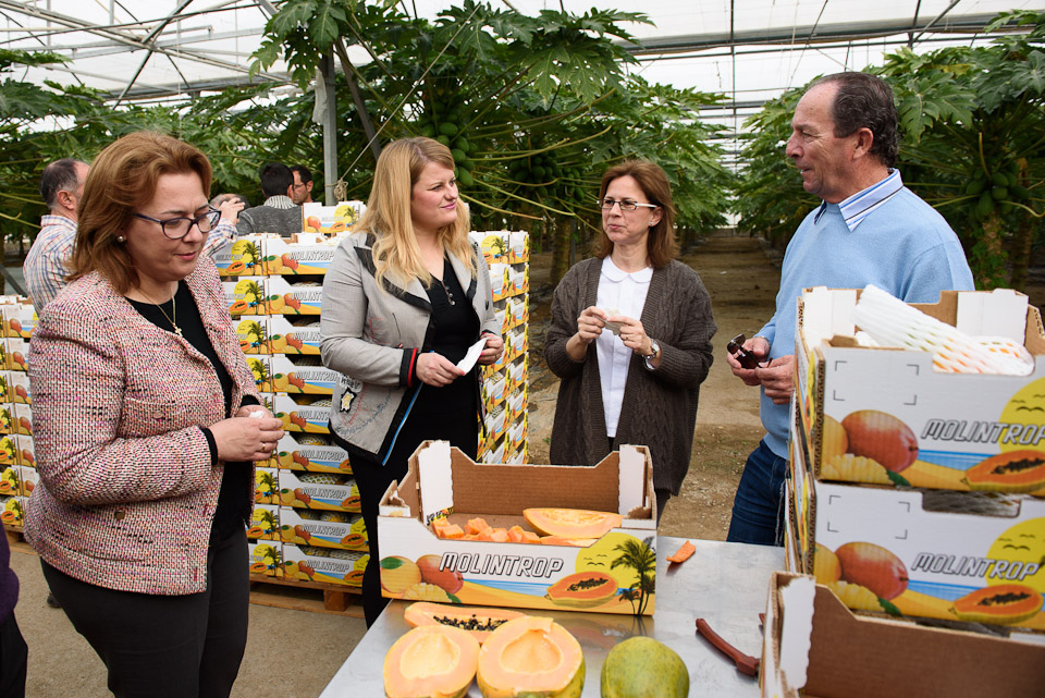 La directora general de Innovación Agroalimentaria y la alcaldesa de Mazarrón visitaron este lunes cuatro fincas dedicadas al cultivo de papaya, mango y pitahaya