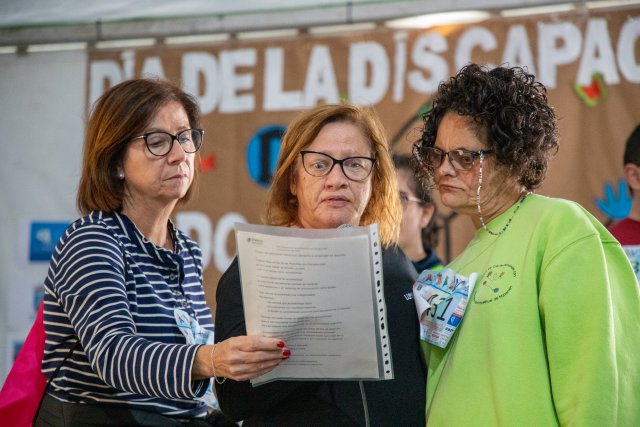 Al finalizar la marcha, la carpa municipal ubicada junto al Pabellón de Deportes 'La Aceña' acogió la lectura de un manifiesto por parte de varios usuarios del centro. Allí se sumaron junto al resto de miembros del gobierno local, la concejala de Educación, Silvia García, área que facilitó el transporte de los escolares para su participación en la marcha, y el concejal Jorge Durán.