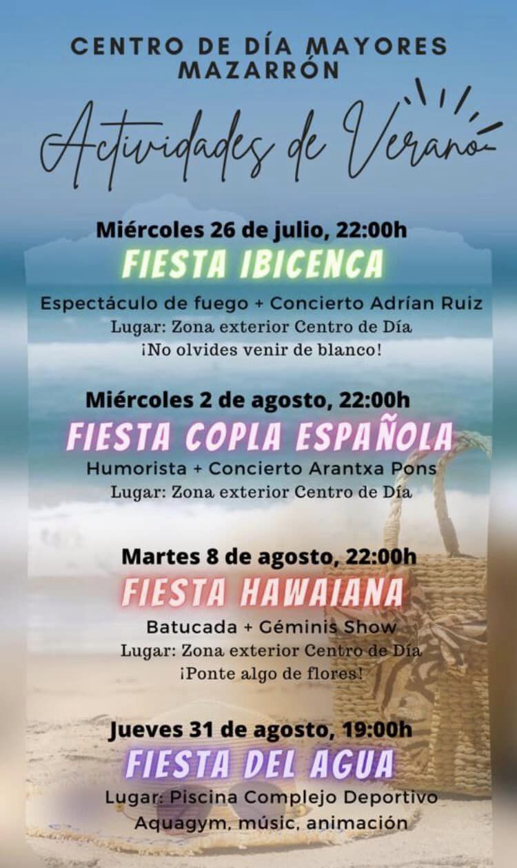 Para ello, desde el área de Mayores se ha diseñado una oferta lúdica compuesta por cuatro eventos festivos de carácter temático. La primera cita se será el 26 de julio con la celebración de la fiesta ibicenca, un espectáculo de fuego y el concierto de Adrián Ruiz.