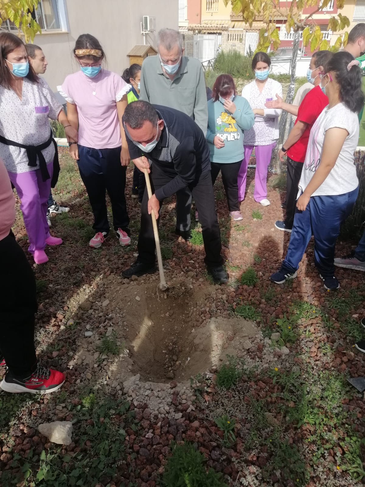 Para ello las monitoras explicaron el origen de este día, las propiedades de este árbol, su procedencia y los tipos de olivo que existen. A continuación, usuarios de ambos colectivos realizaron el hoyo para plantarlo, pusieron turba y regaron, en el jardín de los Recuerdos junto al Centro de día.