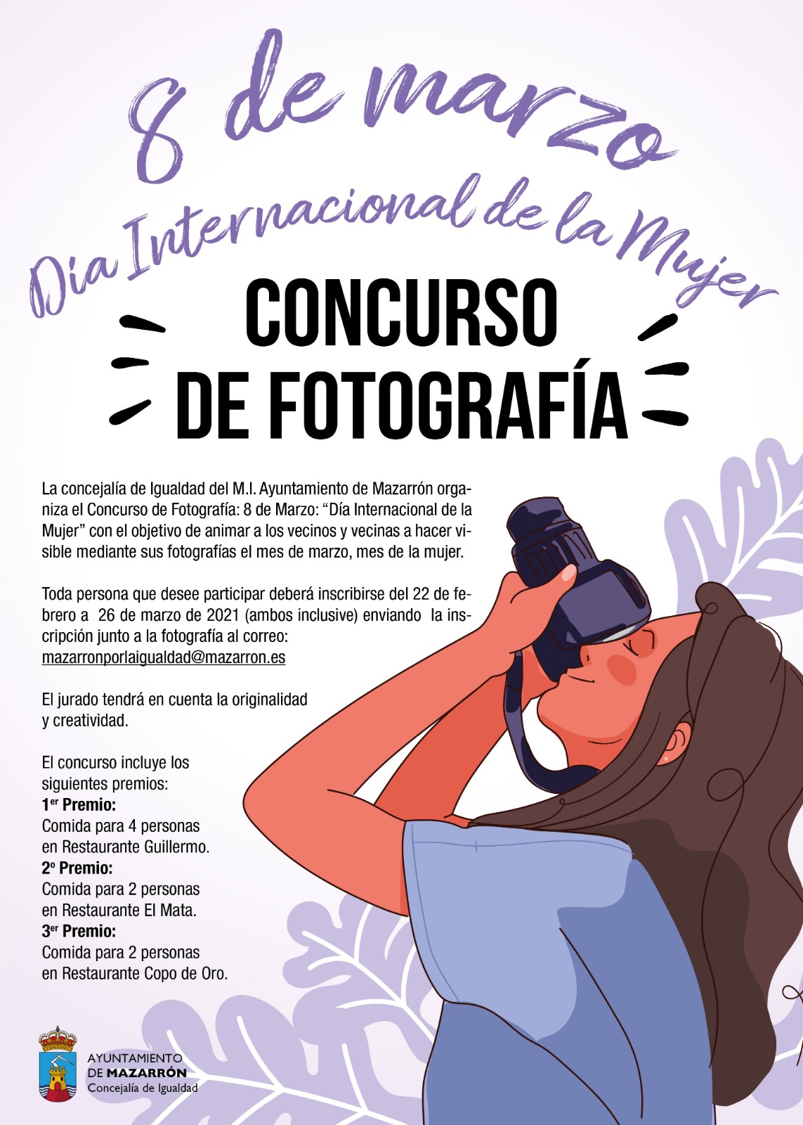 La Concejalía de Igualdad del M. I. Ayuntamiento de Mazarrón organiza el Concurso de Fotografía 8 DE MARZO “DIA INTERNACIONAL DE LA MUJER”.