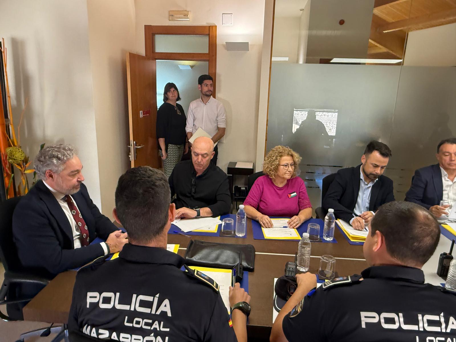 El ayuntamiento de Mazarrón organizó ayer, 2 de octubre de 2025, la Junta Local de Seguridad, en la que se trataron los aspectos de seguridad relativos a la organización de las próximas fiestas locales, romería de Bolnuevo y fiestas patronales de La Purísima, además de la campaña de navidades y año nuevo. “Y no solamente en el periodo estival, o el periodo festivo de la romería y navidad, sino también analizar un poco la situación de seguridad ciudadana del municipio, y las necesidades que tiene el municipio en cuanto a seguridad ciudadana. Agradezco mucho que el delegado de gobierno venga hasta aquí, hasta Mazarrón, a escucharnos y, con total seguridad, a atender las demandas del municipio”, tal como lo ha explicado nuestro alcalde, Ginés Campillo.