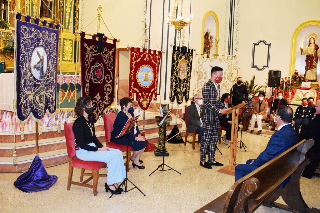 Antes de comenzar ésta, el concejal de Cultura, Ginés Campillo, hizo entrega José Lorente Zamora, perteneciente a la Cofradía de San Juan, de la placa que lo acreditaba como ‘Nazareno del Año’. Un homenaje que no pudo llevarse a cabo el pasado año con motivo del confinamiento y que se ha retomado en este 2021. Su hija, María José Lorente, fue la encargada de hablar en nombre de su padre agradeciendo este reconocimiento.
