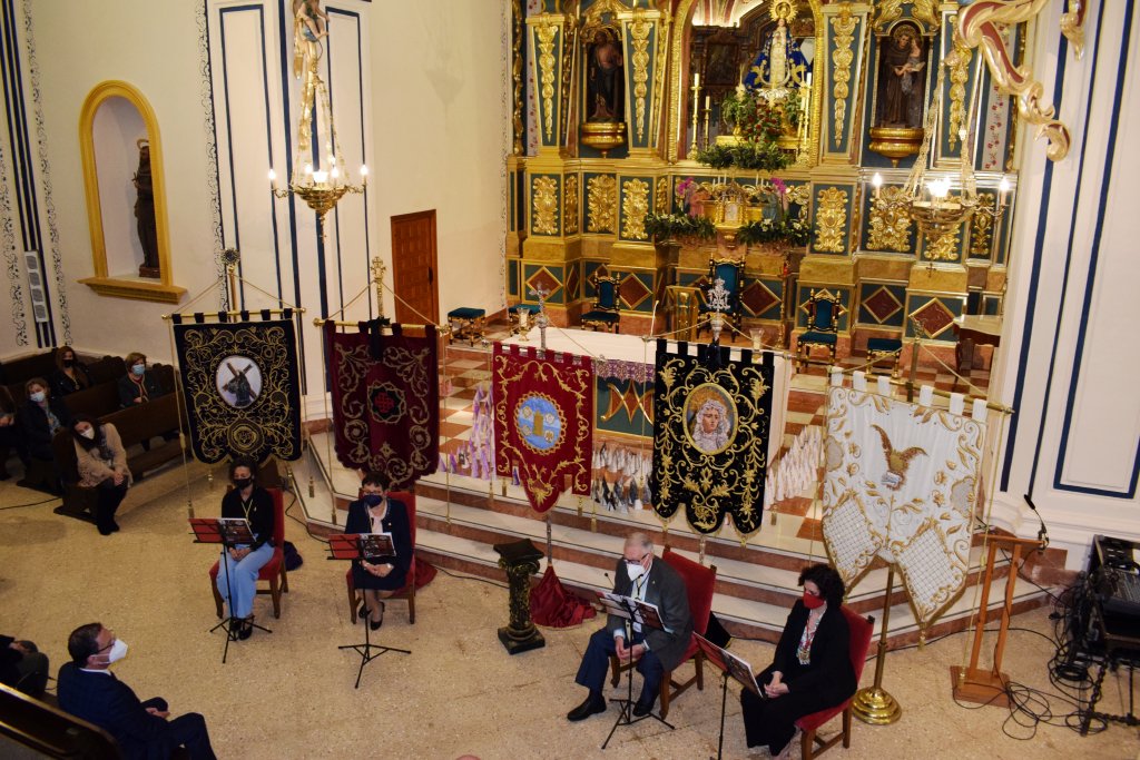 La entrega dio paso al acto ‘Corazón Nazareno’. Emilia Sánchez, de la Cofradía de San Juan, Diego Miras, de La Soledad, Concepción Rosa, por el Santo Sepulcro, y Juana María Rodríguez, de Nuestro Padre Jesús, fueron los 4 cofrades que contaron, a modo de diálogo, sus vivencias dentro de sus respectivas agrupaciones cofrades, así como reflexionaron sobre el sentido de esta celebración religiosa que de nuevo este año se ha visto afectada por la pandemia.