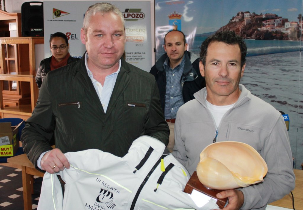 El primer edil y José Hernández, presidente del “Club de Regatas Mazarrón” que ha organizado la prueba junto al consistorio, han hecho entrega de los premios una vez finalizada la segunda manga de la regata, que ha tenido lugar esta mañana. El temporal de lluvia que ha acaecido hoy no ha impedido que los regatistas hayan tomado la salida a las 11 de la mañana, viéndose obligados a una máxima entrega física y técnica en algunos momentos de la competición que ha sobresalido por su espectacularidad gracias a las fuertes rachas de viento que acompañaban el temporal. La manga del sábado fue mucho más tranquila ya que, pasada la lluvia inicial de la mañana, se pudo disfrutar de una jornada soleada y con agradables temperaturas.