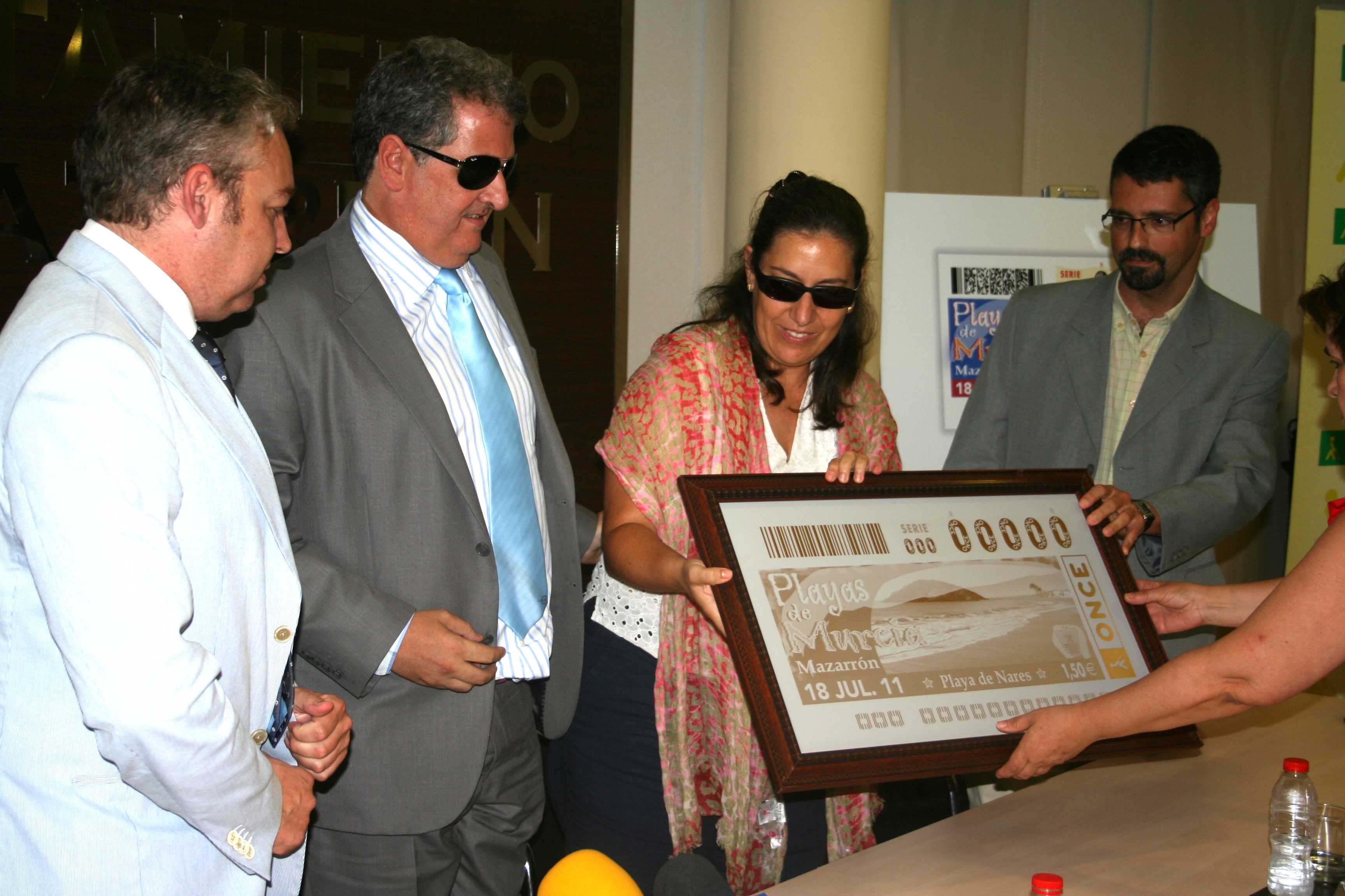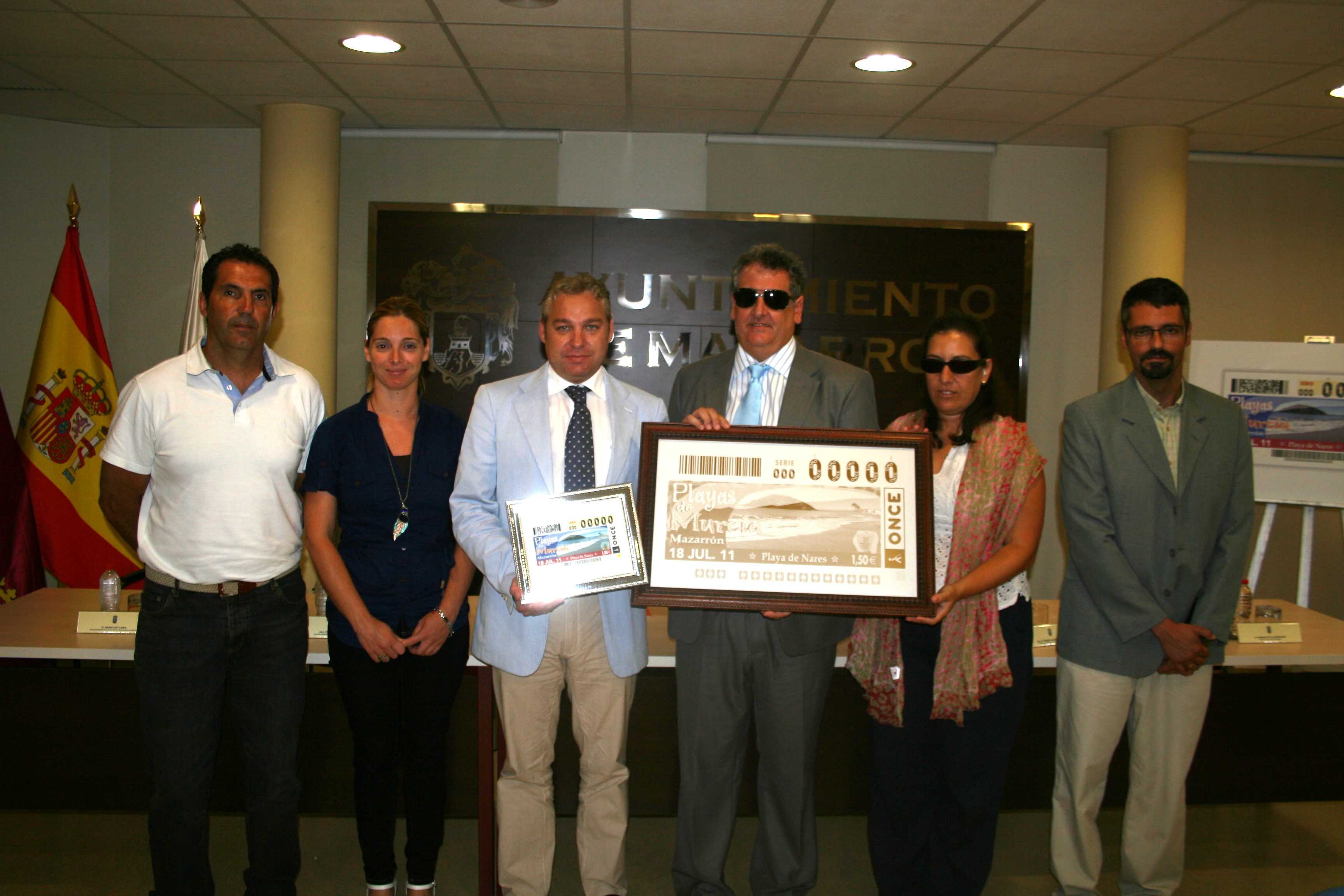 La Organización Nacional de Ciegos de España (ONCE) está dedicando una serie de sus cupones a las playas de la Región de Murcia. La playa que ha elegido esta organización para ilustrar el cupón del próximo lunes 18 de julio ha sido la Playa de Nares. Hoy el alcalde de Mazarrón, Ginés Campillo, y el delegado territorial de la ONCE, Juan Carlos Morejón de Girón, han presentado dicho cupón ante los medios.