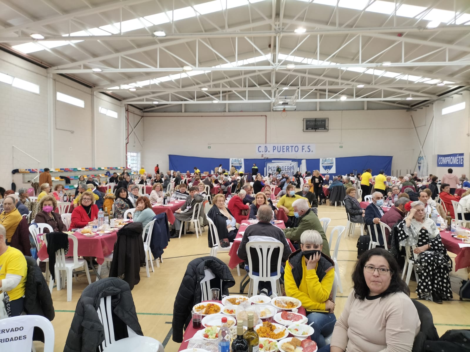 A partir de las 13:00 horas en el pabellón deportivo del C.E.I.P. Miguel Delibes fueron llegando las personas mayores de Mazarrón, mientras en la entrada se cocinaba una paella gigante y dentro se preparaban los espectáculos de la jornada.