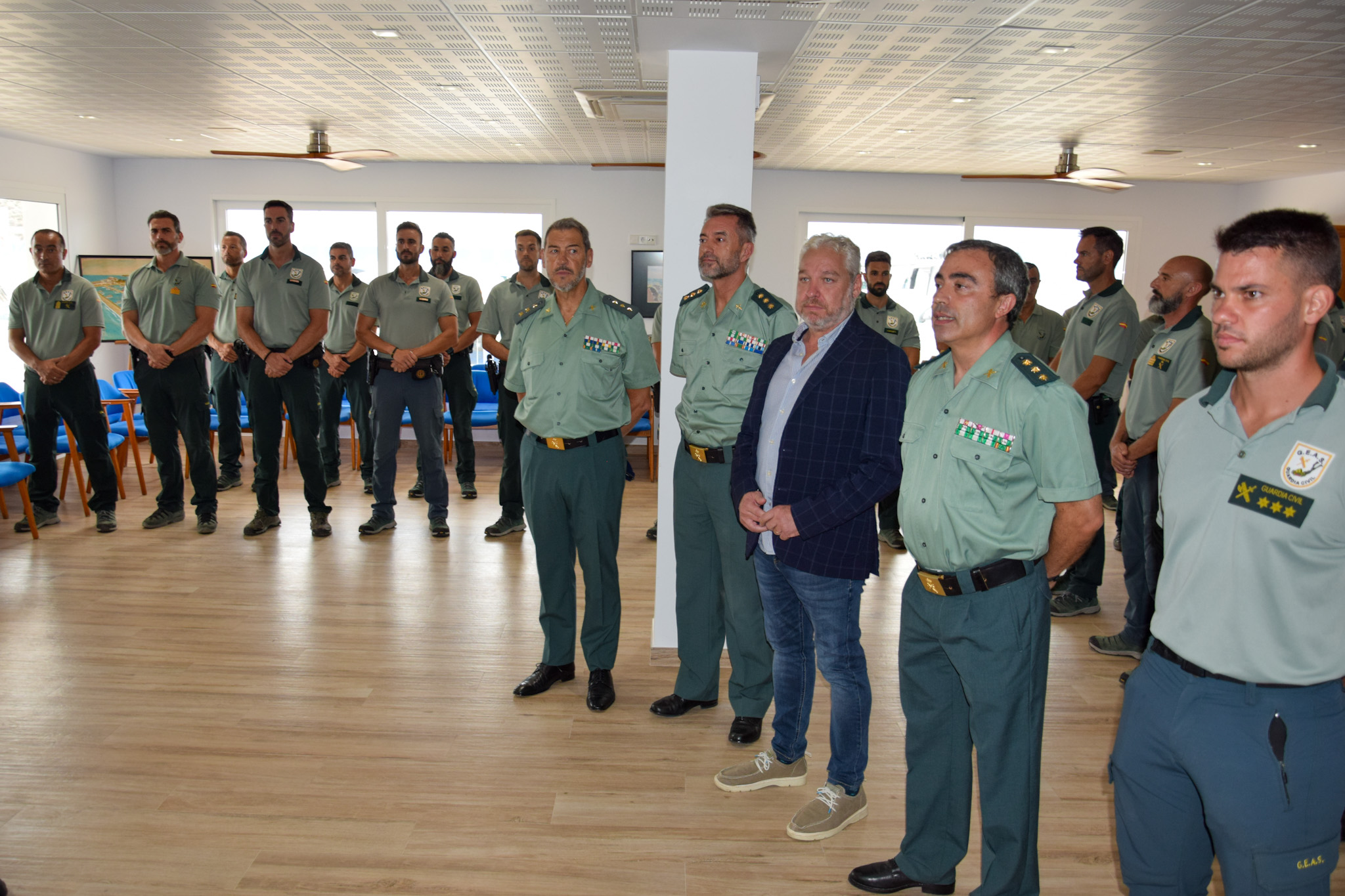 La Guardia Civil ha presentado en el Club de Regatas de Puerto de Mazarrón un nuevo grupo técnico de buceo de alta especialización dentro de la Unidad de Actividades Subacuáticas del Cuerpo. La presentación se ha realizado en el marco formativo que la benemérita viene desarrollando anualmente en el municipio y a la que ha asistido el alcalde Ginés Campillo, quien ha agradecido a la Guardia Civil “que un año más elija Mazarrón para formarse, ya que eso nos da un nombre a nivel de buceo y contribuye a alargar la temporada de negocio”
