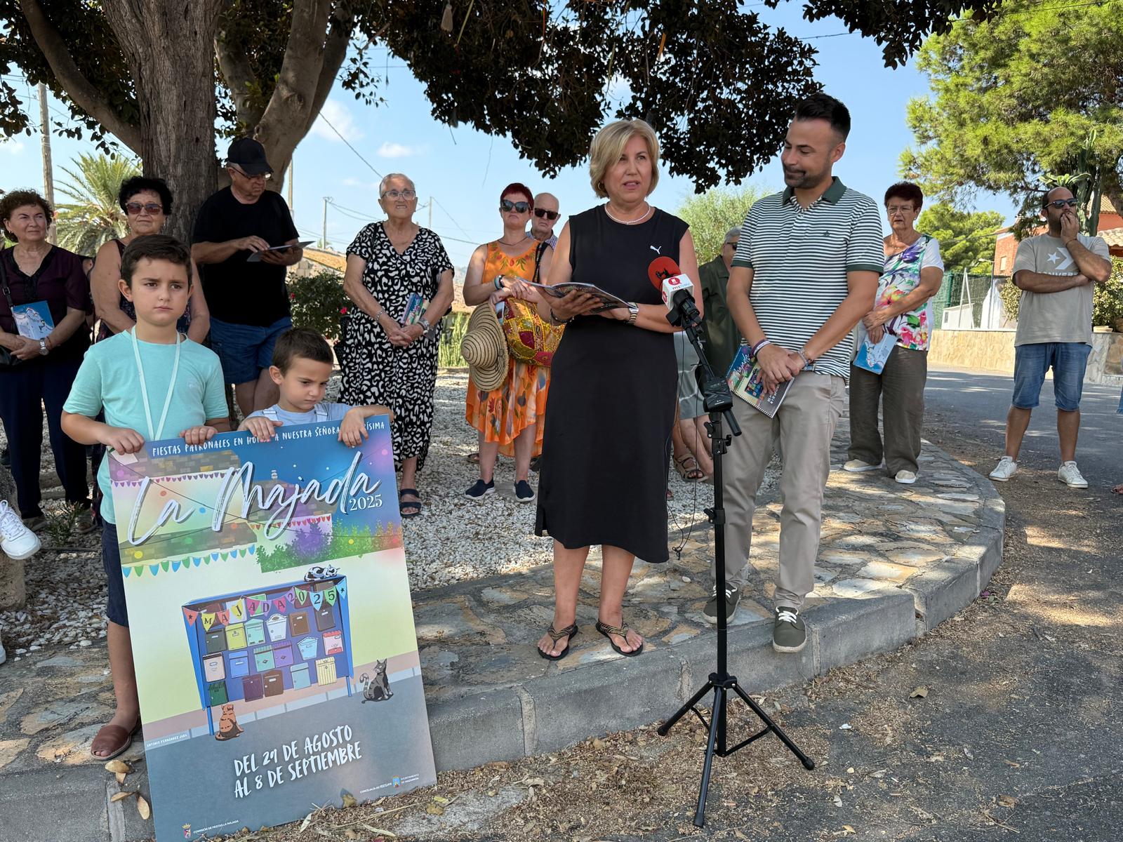 La alcaldesa pedánea de La Majada, Rosa Jorquera, acompañada por el concejal de Festejos, Miguel Ángel Peña, presentaron el pasado sábado el cartel y la programación de las fiestas de La Majada junto a miembros de la asociación vecinal, en un acto al aire libre junto a la iglesia de la pedanía mazarronera.