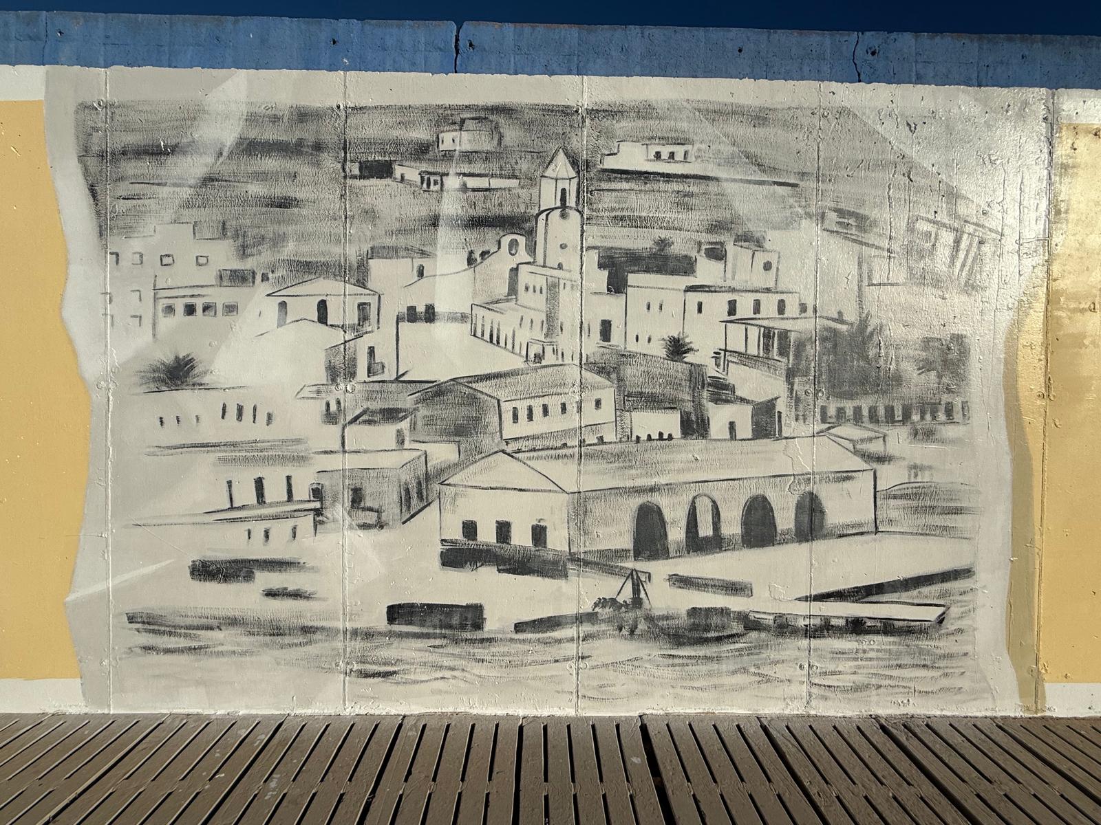Mazarrón rinde homenaje a la historia de sus pescadores con un mural artístico de gran formato en el puerto pesquero