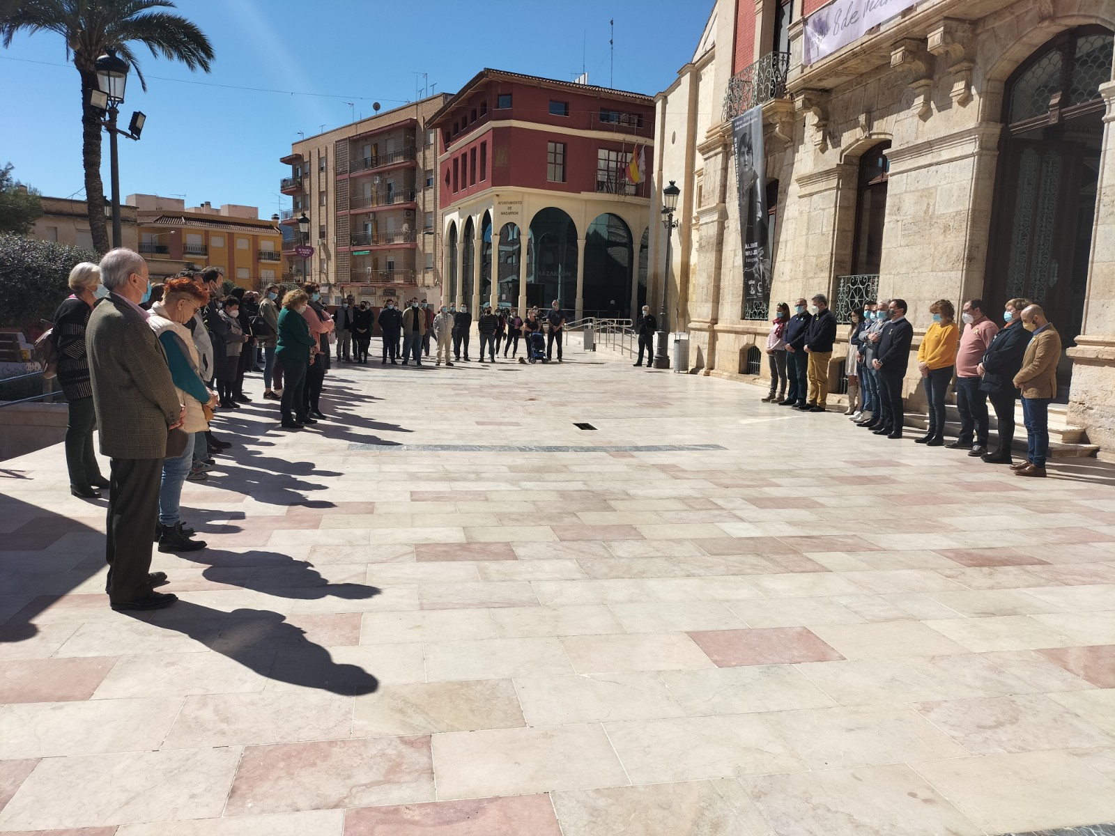 A las 12:00 horas se ha realizado la concentración silenciosa de cinco minutos frente a Casas Consistoriales en solidaridad con el pueblo ucraniano. Los minutos de silencio han finalizado con un fuerte “No a la guerra” por parte de Gaspar Miras, Alcalde de Mazarrón. Al encuentro ha acudido el Equipo de Gobierno y parte de la Corporación Municipal.