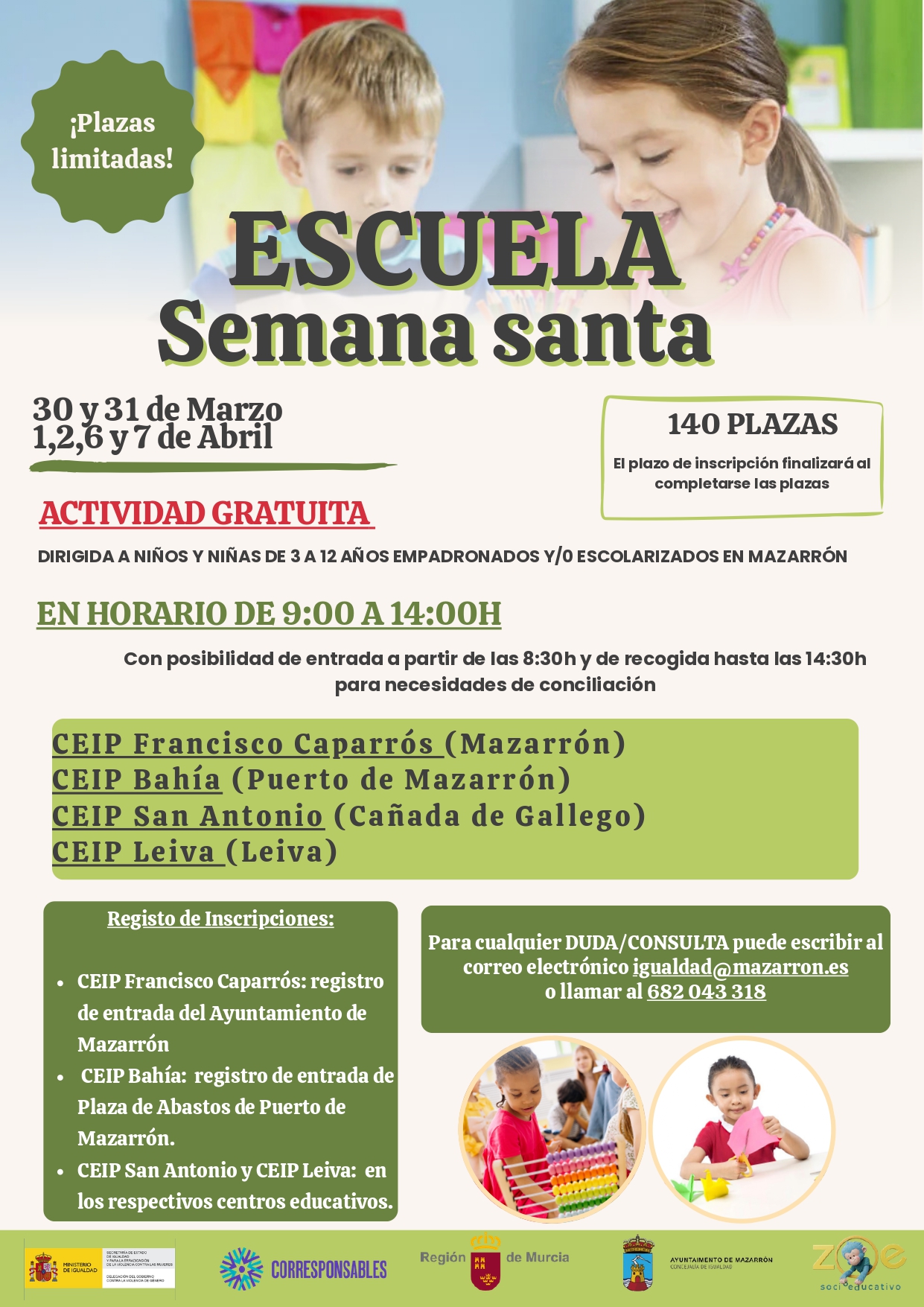 Se ha presentado esta mañana una nueva edición de la Escuela de Semana Santa, una iniciativa dirigida a facilitar la conciliación familiar durante el periodo vacacional y ofrecer a los más pequeños una alternativa educativa y de ocio.