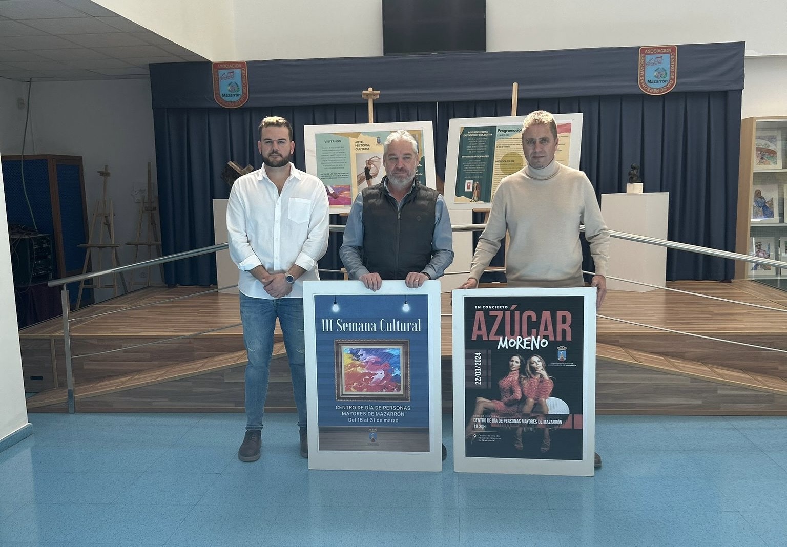 Azúcar Moreno será la actuación estelar dentro de un amplio programa de actividades que han presentado el Alcalde de Mazarrón, Ginés Campillo, el concejal de Cultura, Jorge Durán, y el director del Centro de Día, Bartolomé Madrid.