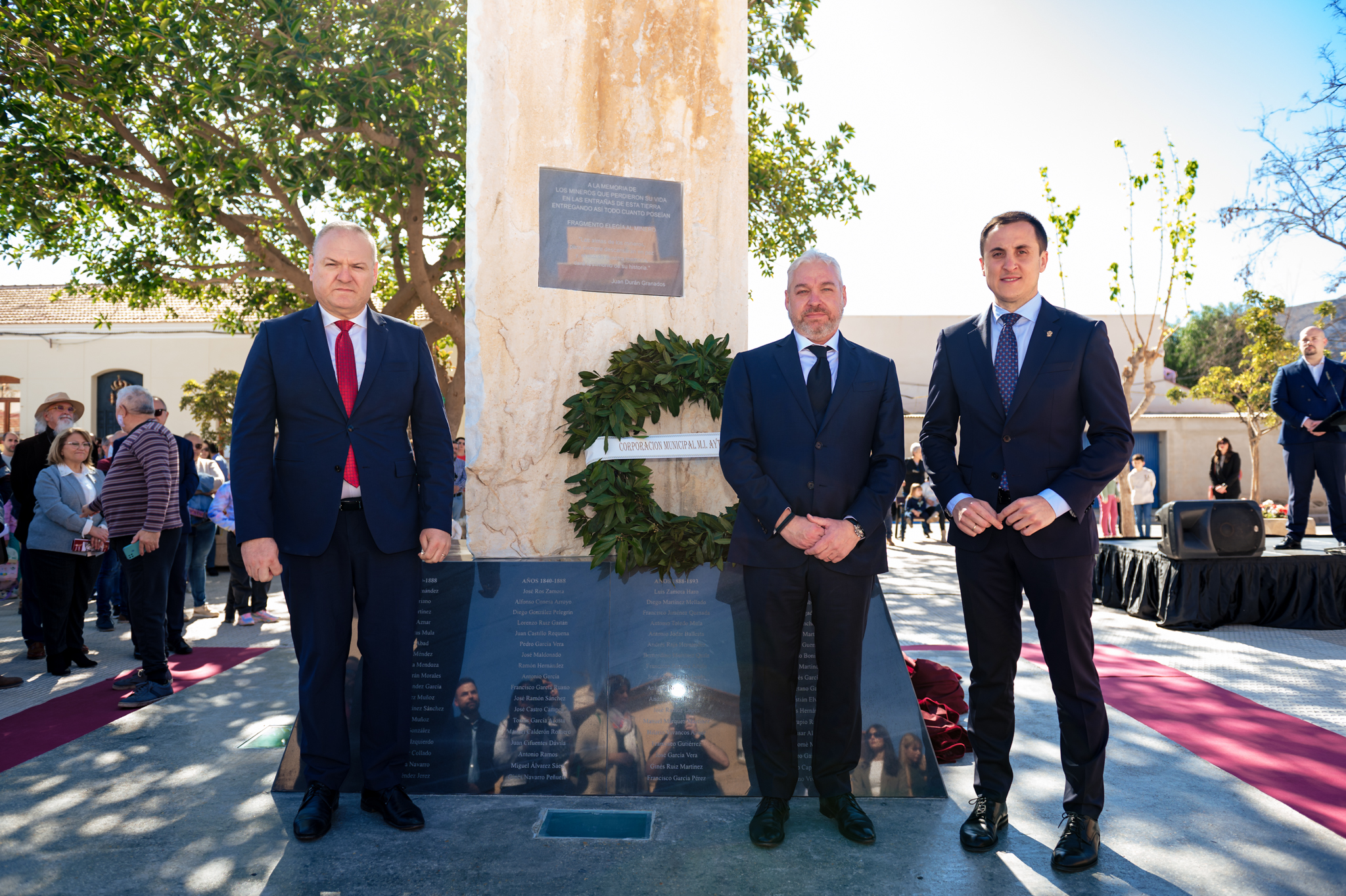 El alcalde Ginés Campillo descubrió el monolito junto a los alcaldes de Cuevas del Almanzora y Vera, Antonio Fernández Liria y Alfonso García Ramos