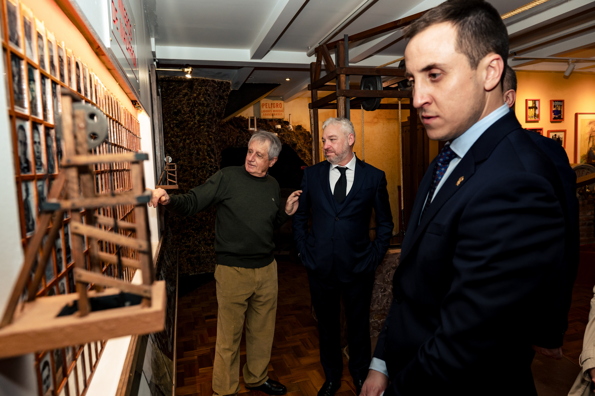 Los alcaldes recorrieron las estancias de los dos inmuebles que, actualmente, alberga la exposición ‘Filón Prodigio’ de Lidó Rico, una auténtica oda a la minería y sus protagonistas, los mineros.