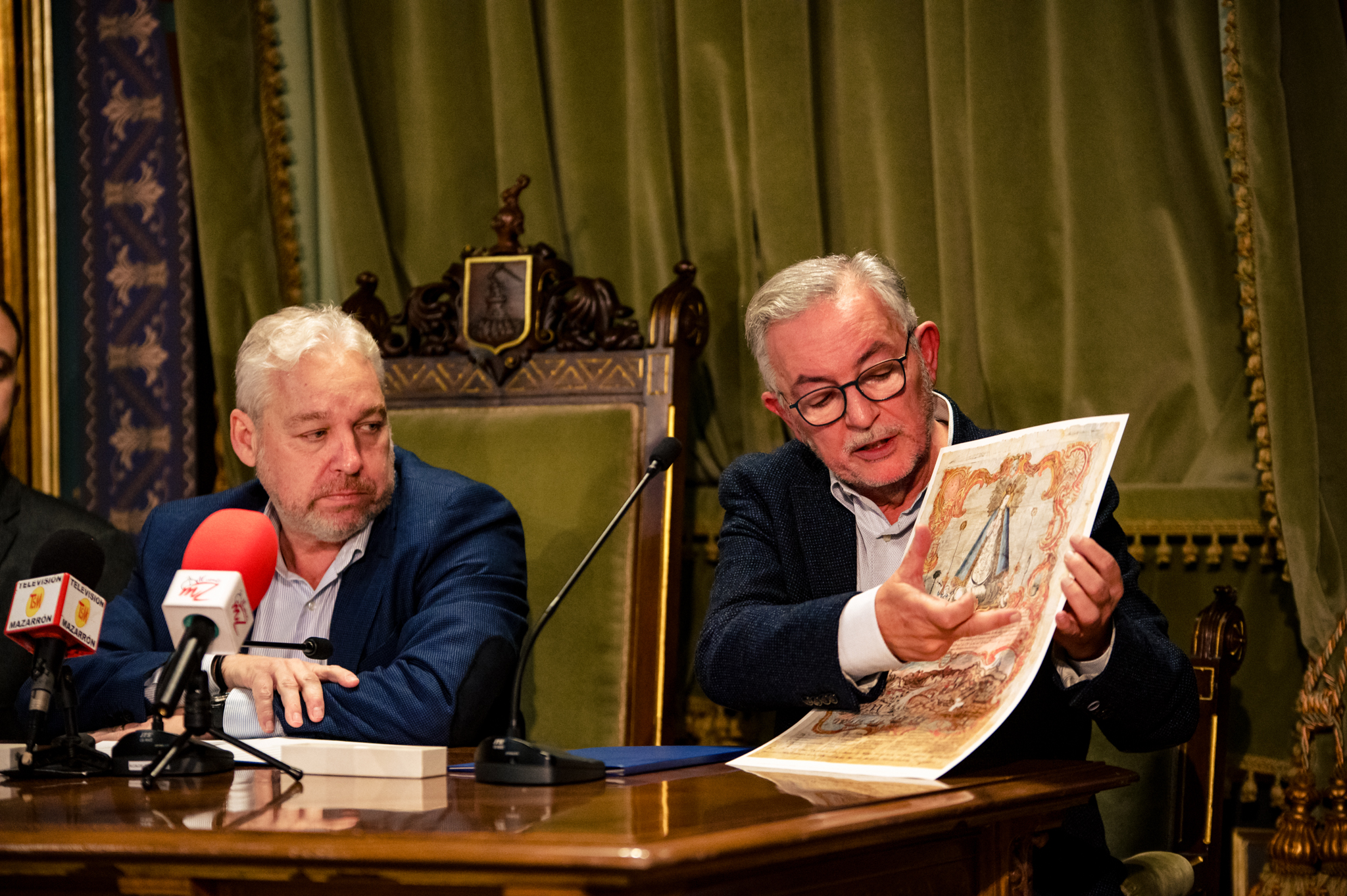 El cronista destacó la belleza y singularidad del documento, dividido en dos partes: una con el grabado tradicional y otra con una vista numerada de lugares de Mazarrón que han desaparecido, revelando su arquitectura desconocida hasta el momento.