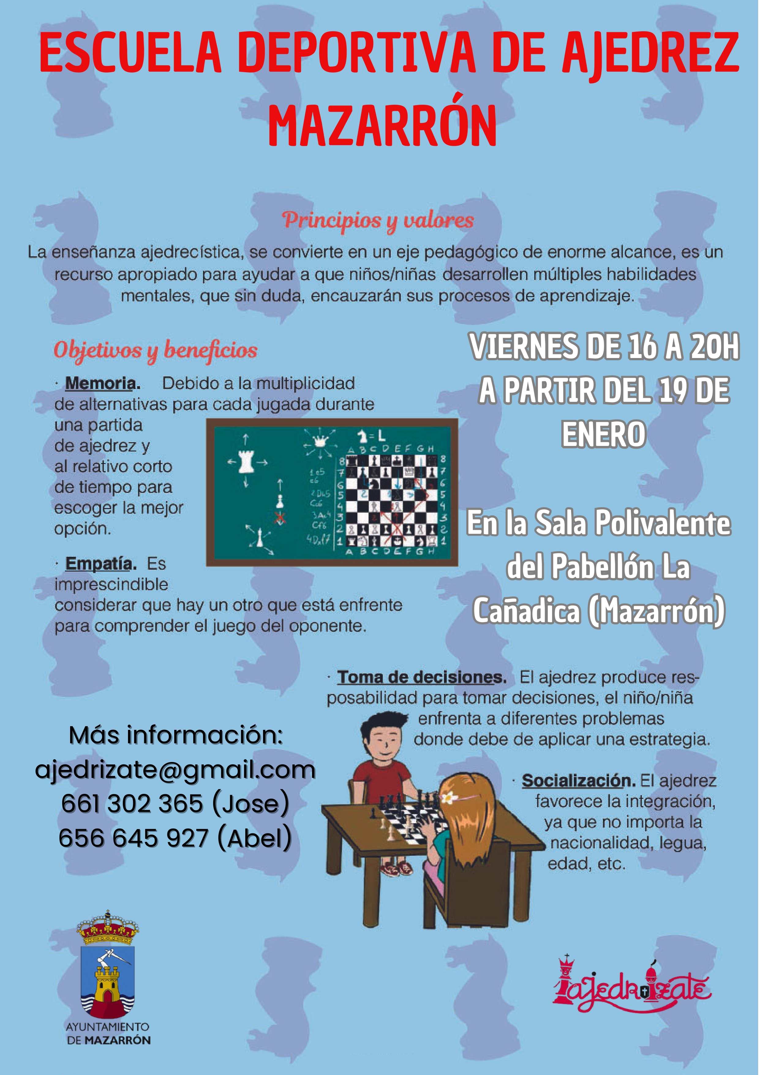 Para obtener más detalles, se puede contactar a través del correo electrónico ajedrizate@gmail.com o a los teléfonos 661 302 365 (Jose) y 656 645 927 (Abel).