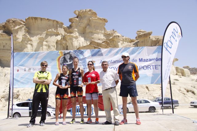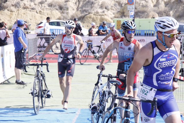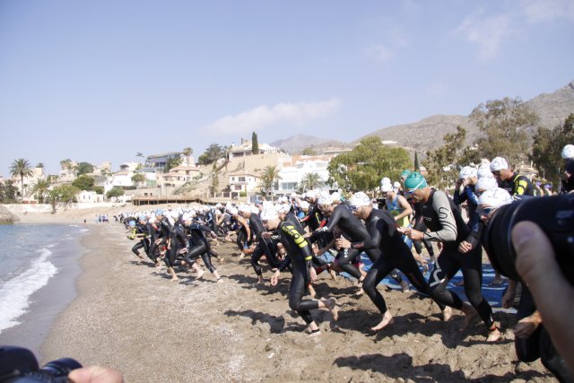 El Triatlón Bahía de Mazarrón, que este año cumplía su segunda edición, se confirmó este domingo como una prueba a destacar dentro de esta especialidad deportiva enmarcada en el ámbito regional. Organizada por el Club Deportivo Bahía de Mazarrón y el Ayuntamiento, la competición reunió finalmente a 260 participantes en la playa de Bolnuevo. En ese punto comenzó la prueba con los 750 metros a nado que tenían que completar los atletas. Seguidamente y tras pasar por las duchas, iniciaron el recorrido en bicicleta bordeando la sierra de Las Moreras hasta sumar 20 kilómetros, para finalizar con los 5 kilómetros de carrera por el Paseo de Bolnuevo.
