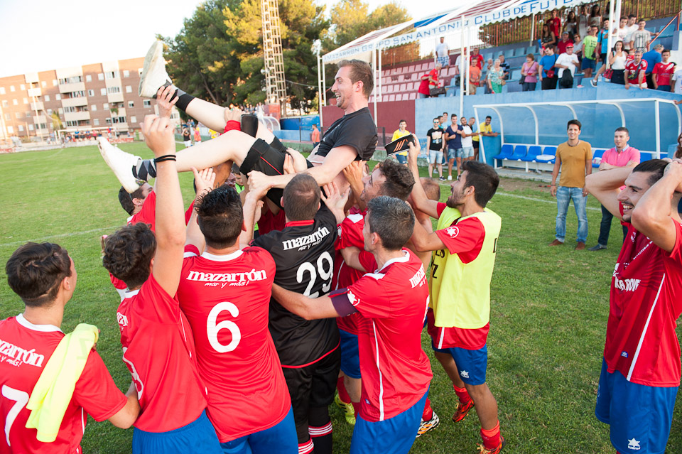 Los aficionados del Mazarrón FC se llevaron el pasado domingo la alegría que llevaban esperando desde hace tiempo. El equipo consumó, ante su afición, el ascenso a la Preferente Murciana. Tras una buena semifinal ante el Juvenia, el conjunto entrenado por Javi García, llevaba una cómoda renta tras el 0-2 de la ida con El Esparragal. Finalmente, los mazarroneros no solo defendieron la renta sino que además lograron cerrar con triunfo también la vuelta con un resultado final de 2-1, sumando en el global un 4-1 y sellando con superioridad su ascenso de categoría. Tolo volvió a ser el hombre del partido al anotar los dos tantos.