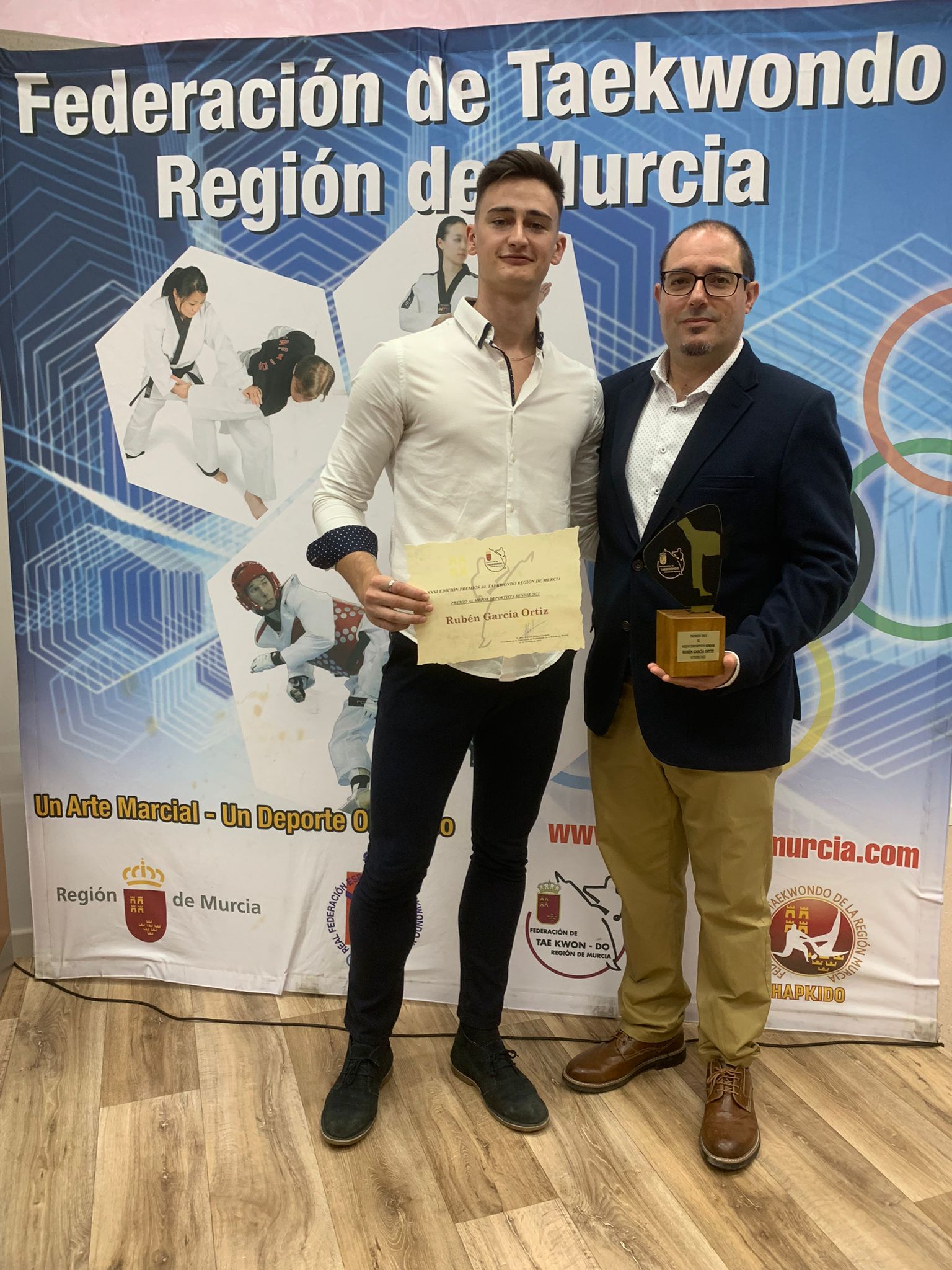 Rubén García Ortiz recibía el pasado sábado en el Centro de Alto Rendimiento Infanta Cristina de Los Narejos el galardón al Mejor Deportista Sénio de 2021, otorgado por la Federación de Taekwondo de la Región de Murcia.