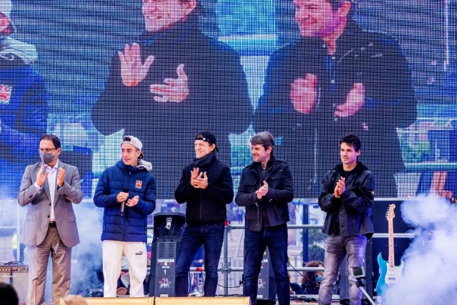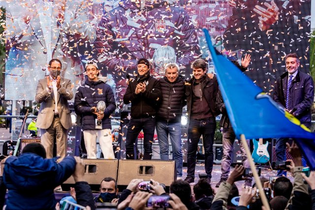 Seguidamente le esperaban en el escenario el ex Piloto Jaume Alguersuari que hizo de showman y presentador, Àlex Crivillé, Carlos Checa y Sete Gibernau, y el periodista mazarronero Juan Cervantes. Estos grandes recibieron al Tiburón de Mazarrón para después dar paso a Gaspar Miras, Alcalde de Mazarrón que hizo entrega de un trofeo con forma de casco y su número, 37 grabado. También subió su familia al completo al escenario y su manager, Albert Valera.