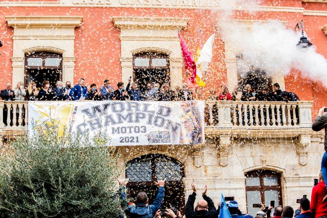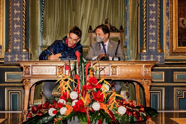 Durante la Bienvenida Institucional, el Piloto de Moto3 firmó en el libro de Honor agradeciendo el cariño mostrado por todos los mazarroneros. El Alcalde de Mazarrón, Gaspar Miras resaltaba que Pedro Acosta tiene todo el apoyo del Mundo y sobre todo de su localidad, que siempre le ha apoyado y le apoyará. Tras la firma en el Libro de Honor, Pedro Acosta salió al balcón de Casas Consistoriales acompañado de su familia y de parte de la Corporación Municipal a saludar a todas las personas que le esperaban en la Plaza del Ayuntamiento. Desde el balcón se dirigió a todos los vecinos y agradecía su apoyo incondicional.