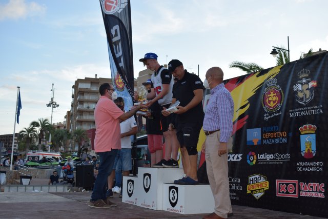 La jornada trascurrió sin ningún incidente significativo, con una climatología casi perfecta y con una gran asistencia de público, que llenaba la playa y las terrazas de los bares y restaurantes cercanos. Concluyó con la entrega de premios, que se llevó a cabo en la misma playa, sobre las seis de la tarde, y a la que asistieron los representantes de los cuatro organismos organizadores, el concejal de Deportes del ayuntamiento de Mazarrón, Francisco García, el presidente de la Federación Española de Motonáutica, José Miguel Martínez; el presidente de la Federación de Motonáutica de la Región de Las Murcia; Dionisio Baño; y el presidente del Club de Náutico, Juan Marín.