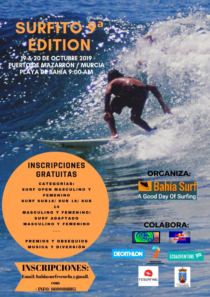 Este fin de semana la playa de La Reya (Bahía Grande) será el escenario de la 9ª Edición de Surfito que organiza el Club Deportivo Bahía Surf con la colaboración de la concejalía de Deportes. El concejal del área, Francisco José García, y el presidente del citado club, José María Cascales, fueron los encargados de presentar la cita que este año tiene un marcado carácter inclusivo.