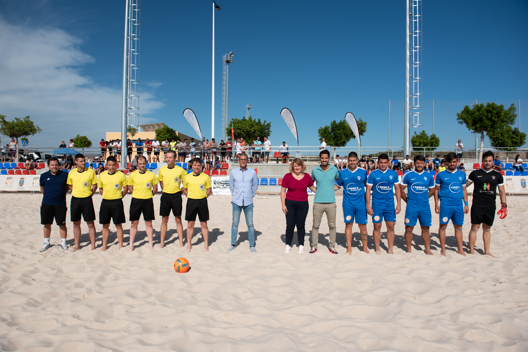 La Liga Nacional de Fútbol Playa estrenó el pasado fin de semana las nuevas instalaciones del Complejo Deportivo Municipal. Los 7 equipos del Grupo Norte midieron sus fuerzas en un torneo que dio comienzo tras el partido inaugural que enfrentó al Bala Azul CD y al AIS Playas de San Javier. Este encuentro contó con la presencia de Domingo Cubero, delegado de la Real Federación Española de Fútbol. Alicia Jiménez, alcaldesa de Mazarrón, realizó el saque de honor del campeonato.