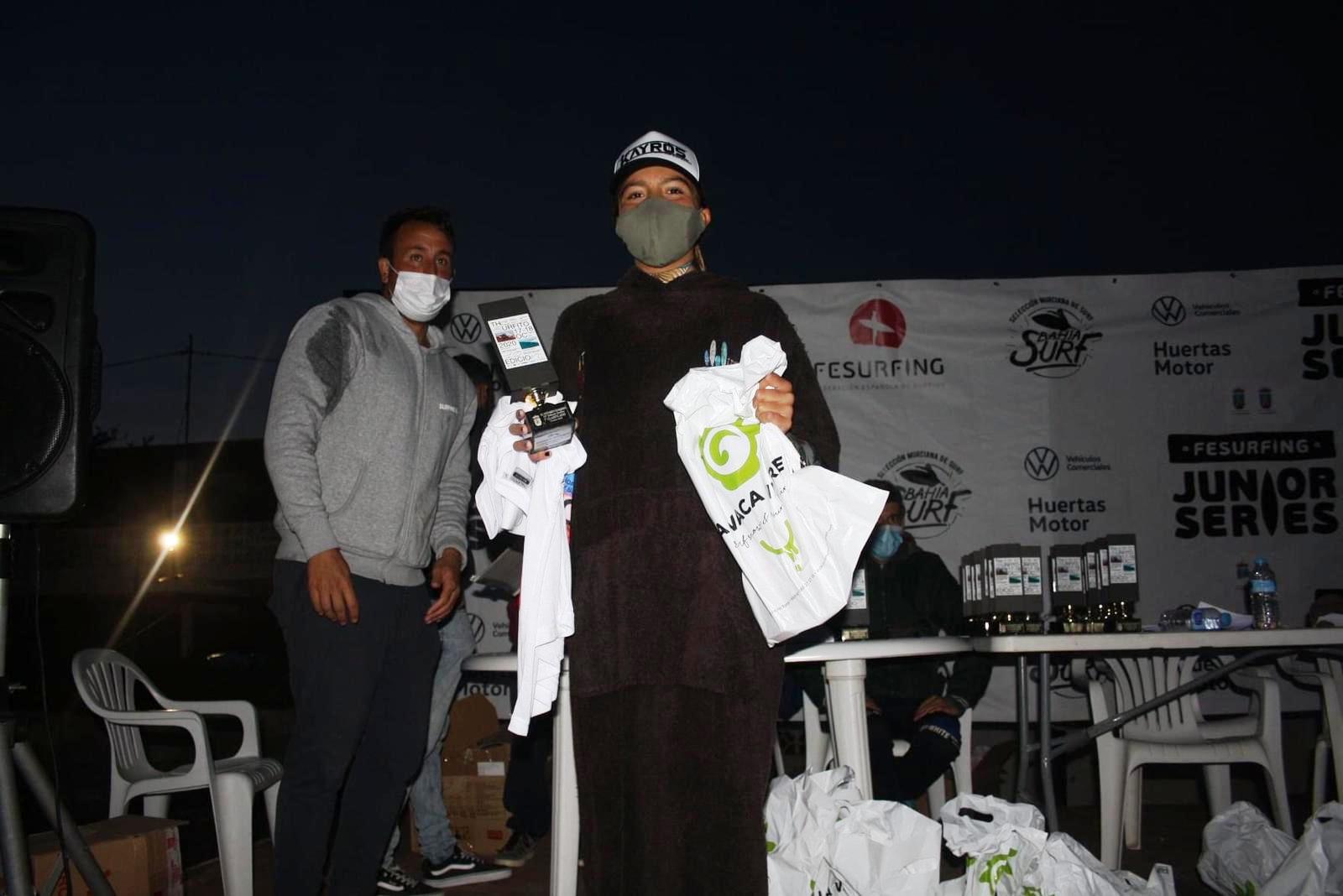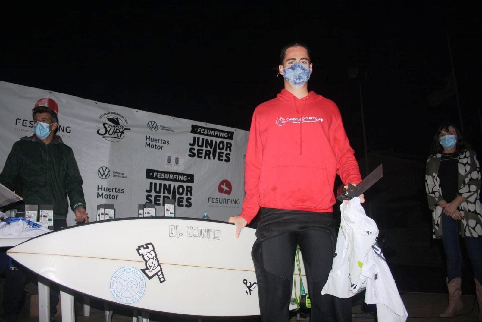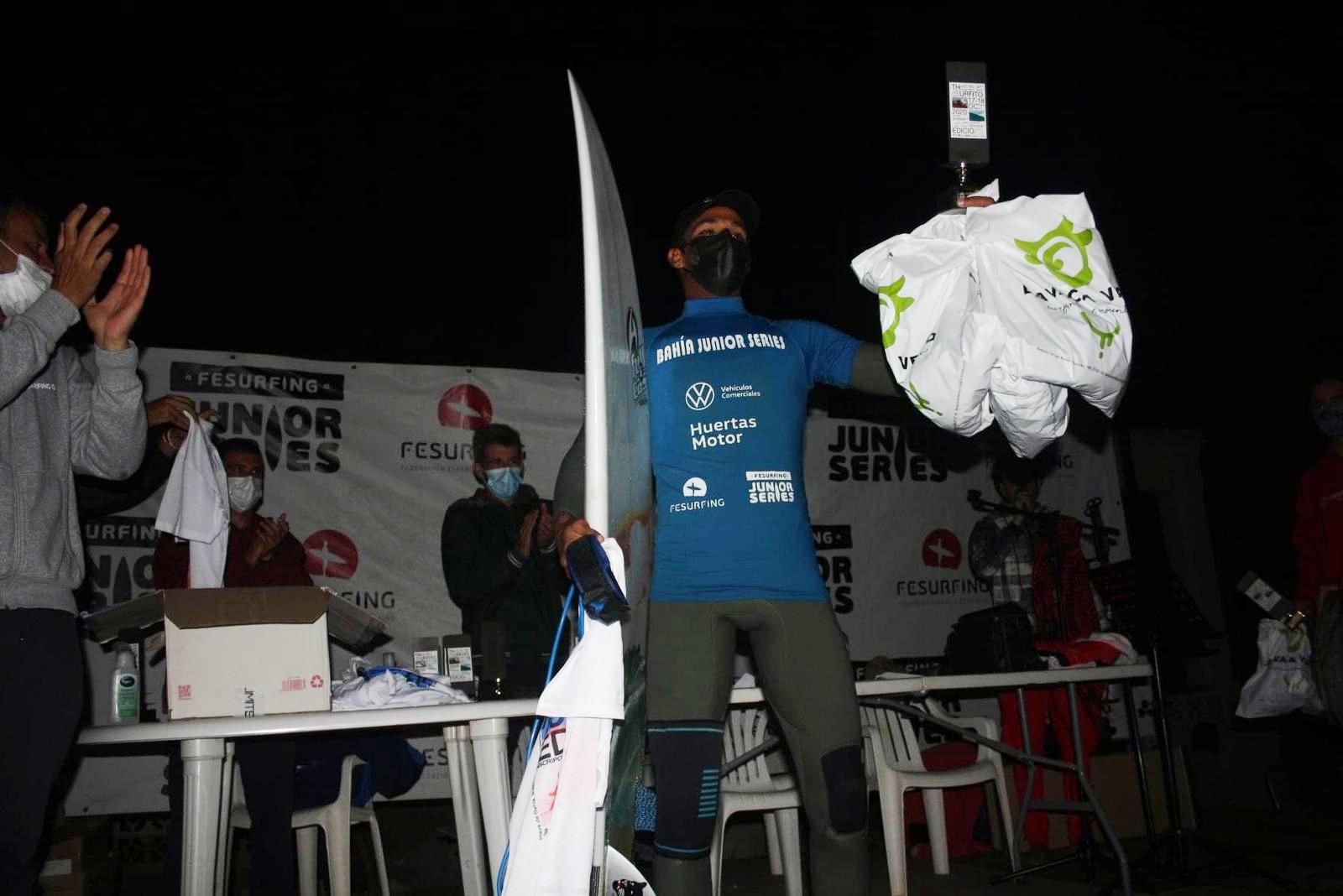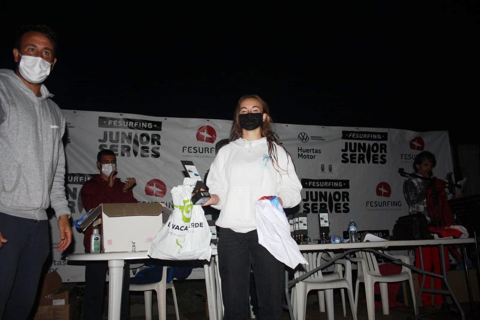 Tras la finalización de la prueba, que contó con todas las medidas de seguridad ante la Covid19, se procedió a la entrega de trofeos por parte del concejal de Deportes, Francisco José García, el presidente del Club Deportivo ‘Bahía Surf’, José María Cascales, y la edil de Medio Ambiente, Plácida Gómez.