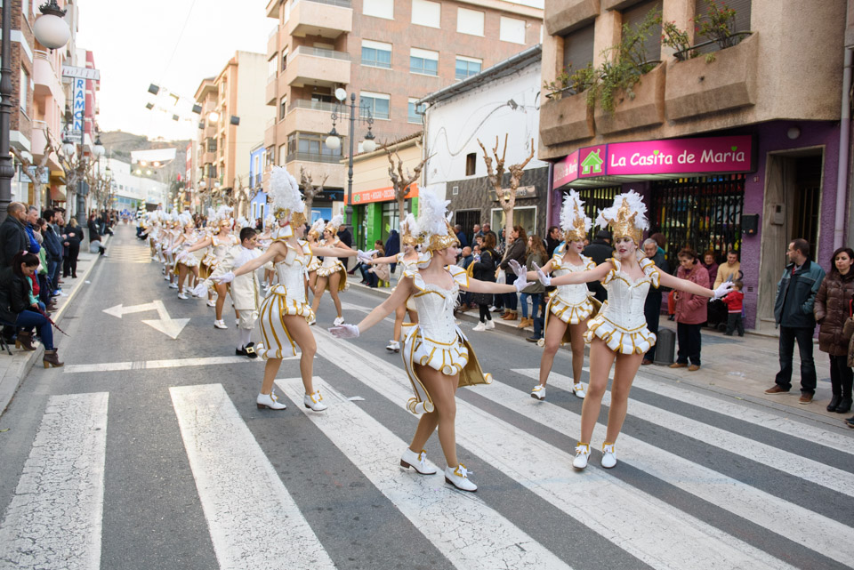Salsalá, Titanes & Bahía Sur, Ambarela, El Tolín y Mármara darán paso a la Escuela de Baile Antonio Jara y al Colegio Ginés García. Seguidamente iniciarán el recorrido las siguientes peñas visitantes: Acay de Archena, Samaná de Mula, Amay de Mula, Escuela de Baile Tomás Estarlich de Lorquí, Musas Calirroe de Sangonera la Verde, Campanula de Sangonera la Verde, Tymbalia de Mula, Faisán de Sangonera la Verde, Kissamba de Mula, Shambála de Sangonera la Verde y Mahula de Mula.