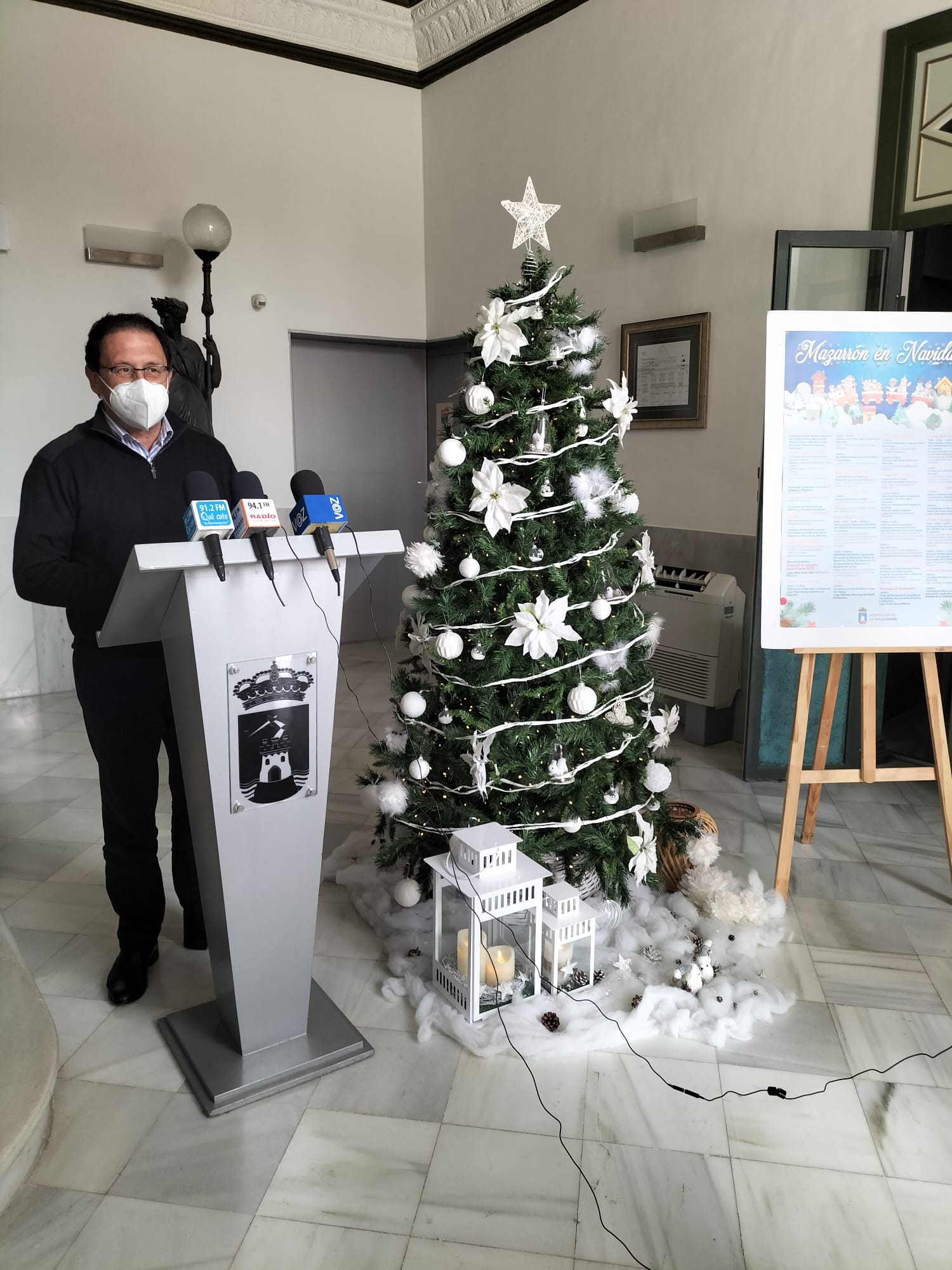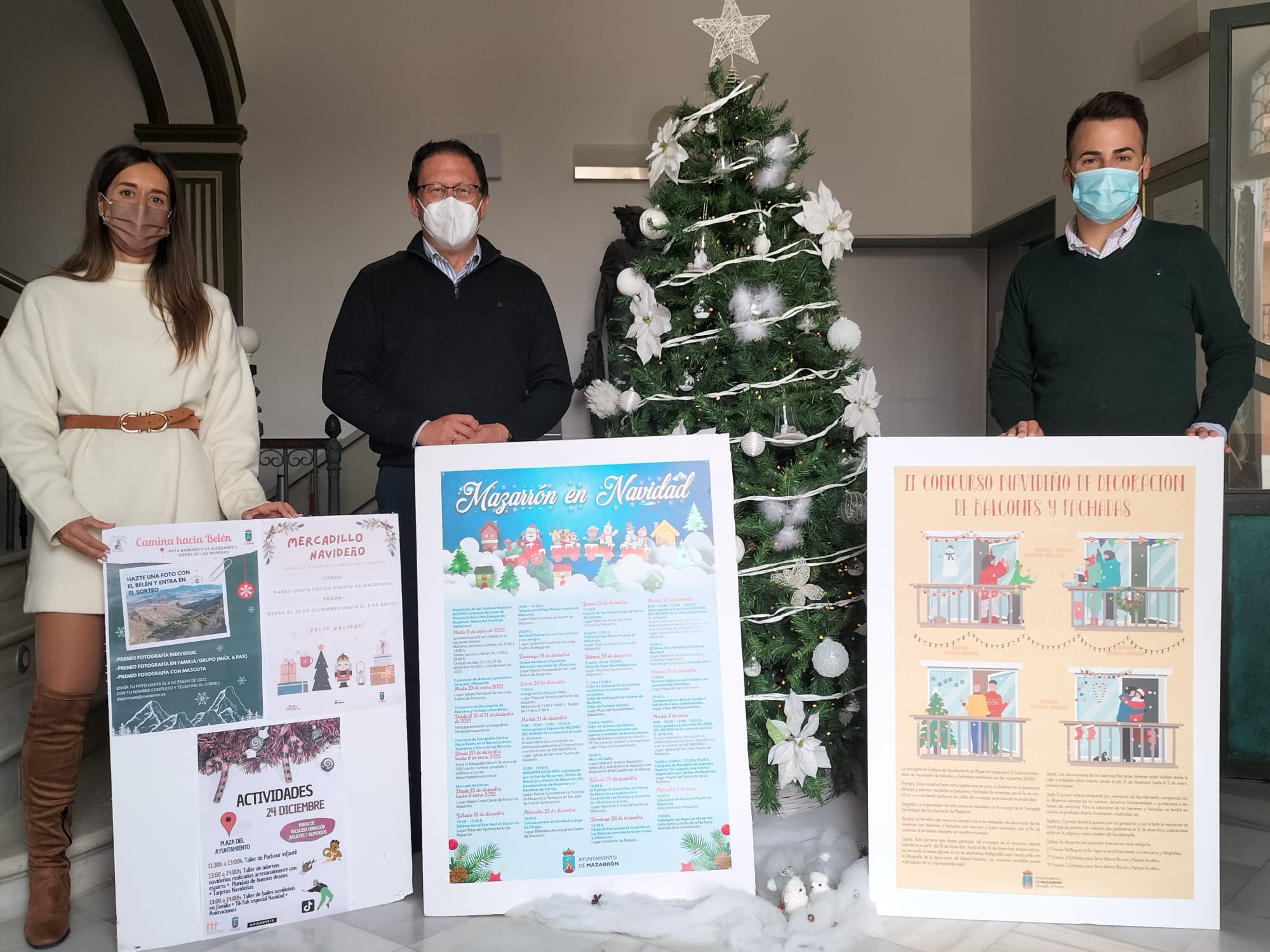 El árbol de Navidad de Casas Consistoriales ha acogido esta mañana la presentación de la Programación de los Festejos Navideños: Mazarrón en navidad, de la mano del Alcalde de Mazarrón, Gaspar Miras, de la Concejalía de Festejos, con Miguel Ángel Peña a la Cabeza y con Silvia García Zamora desde la Concejalía de Juventud.