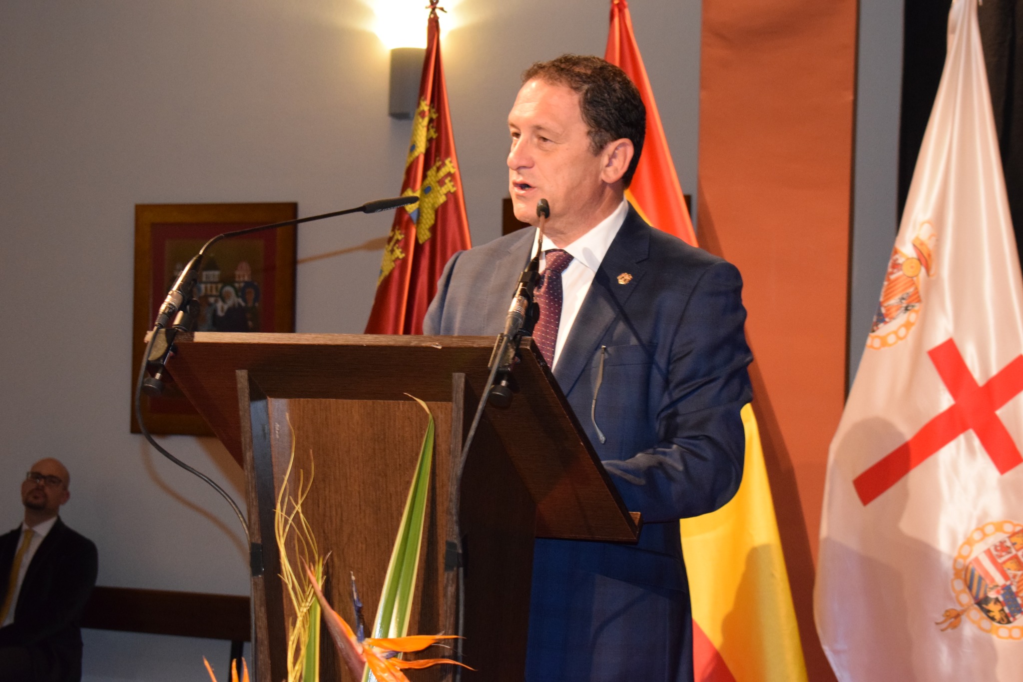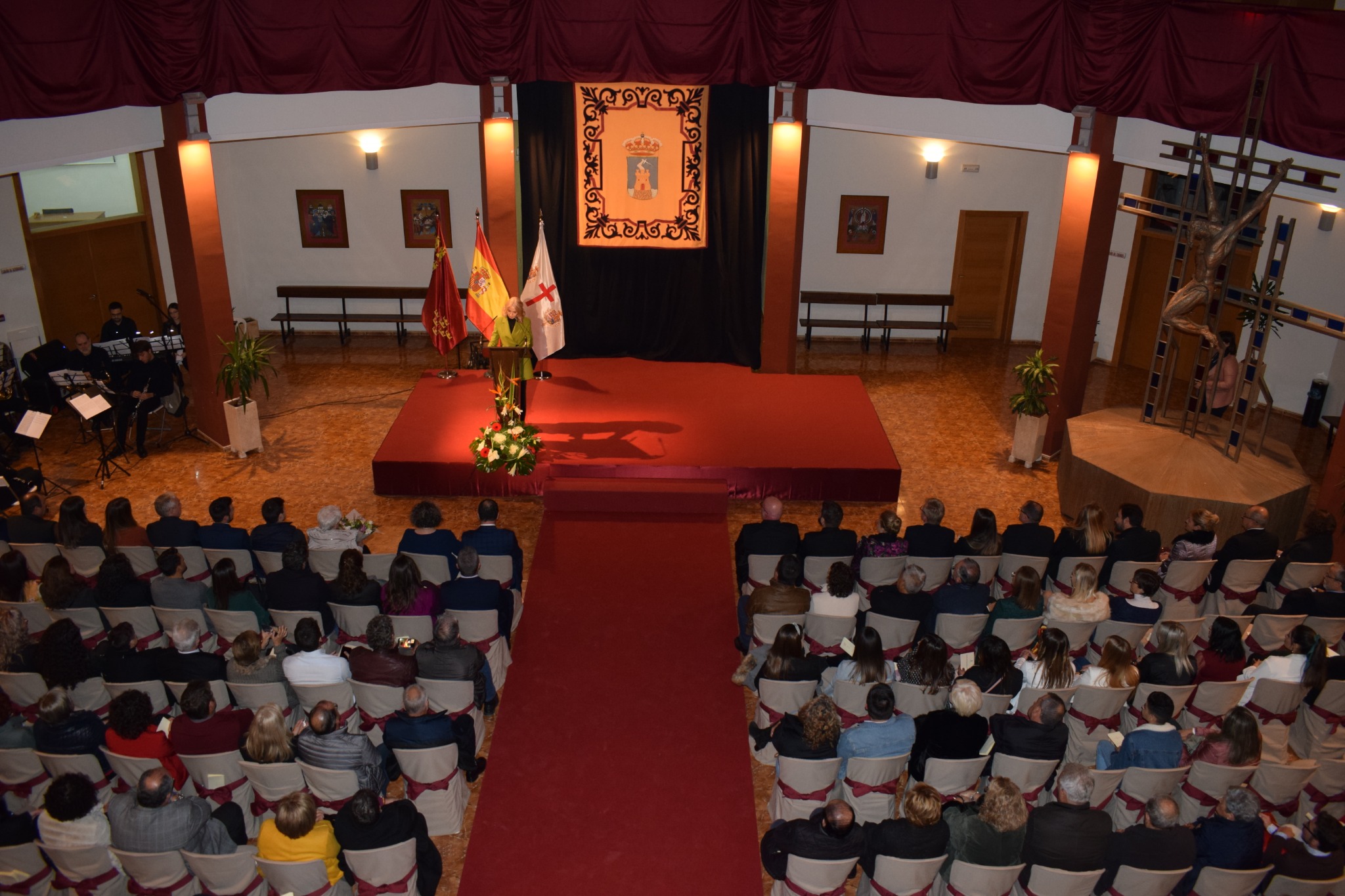 Al finalizar, el alcalde de Mazarrón, Gaspar Miras, otorgó el escudo de oro del Ayuntamiento a la pregonera colocándolo en su chaqueta. El primer edil fue además el encargado de introducir la intervención de Isabel Guillermo, comentando que el acto del pregón “es un reflejo de la devoción que sentimos por nuestra Patrona y también una forma muy particular que los mazarroneros tenemos de ensalzar nuestros símbolos y nuestra identidad desde un profundo respeto a nuestros valores, costumbres y tradiciones que nos hacen ser lo que somos. Nuestra pregonera de este año 2019 representa todos estos valores”.