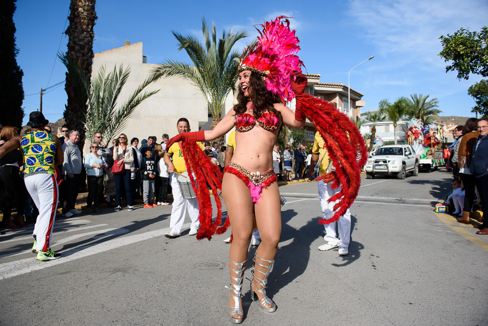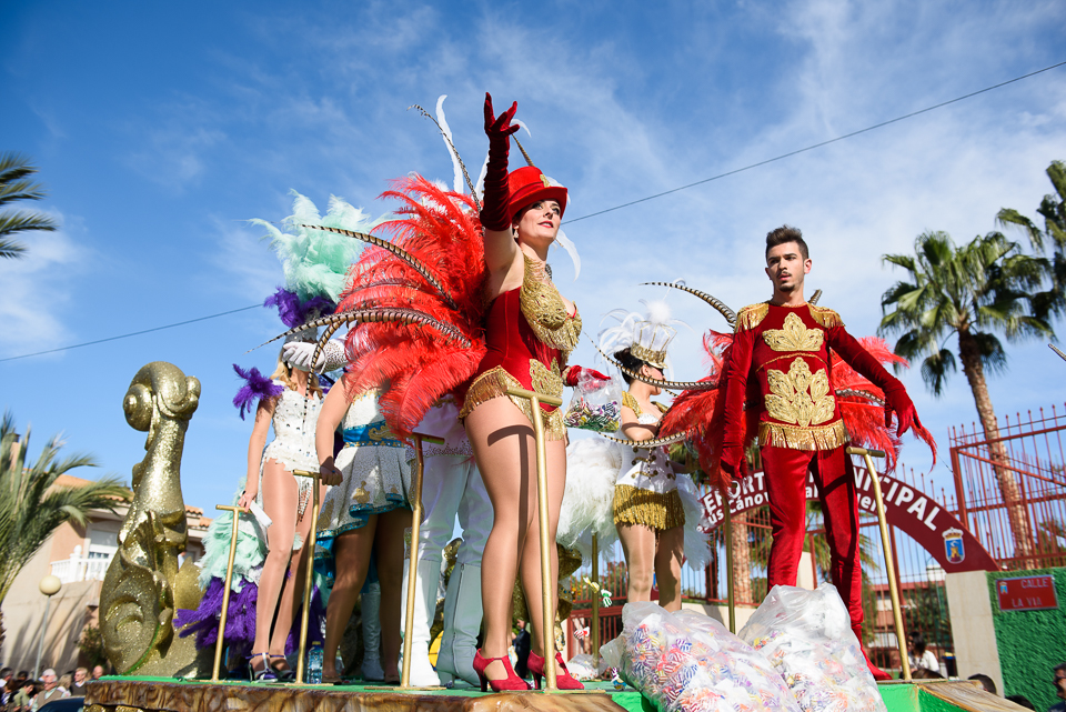 Abrió el desfile la Asociación de Vehículos Clásicos, seguida de la Banda de Tambores y Cornetas de Mazarrón, para dar paso a numerosas atracciones dirigidas a todos los públicos como un llamativo dragón chino, sin olvidar la animación de bailes típicos como jotas y sevillanas. También hubo espacio para la samba brasileña como una demostración de estos ritmos a cargo de experimentadas bailarinas.