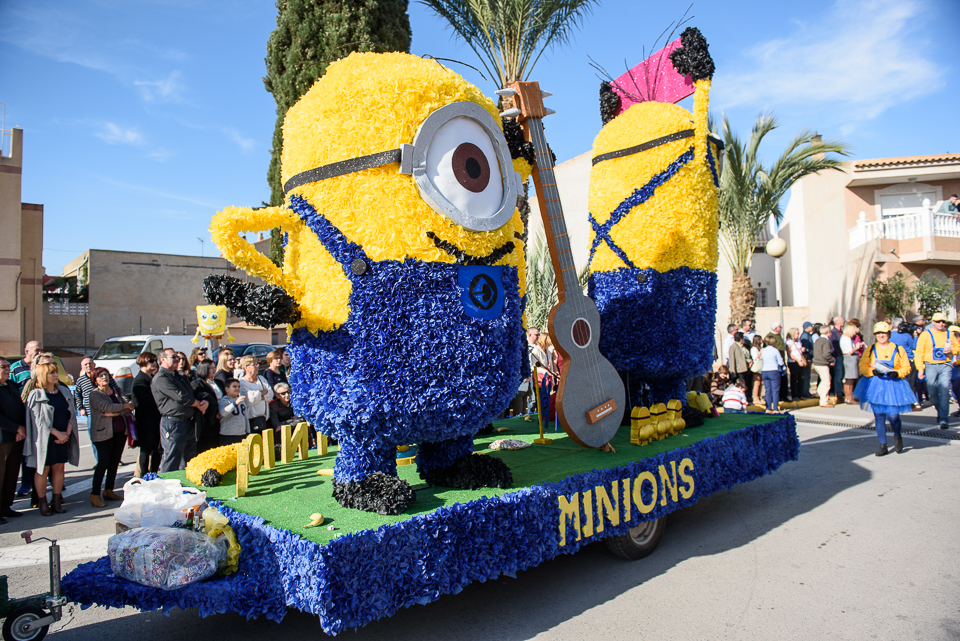 El Carnaval de Mazarrón estuvo presente un año más con una carroza propia, así como el Club de Pensionistas, el Centro de Día con sus carruajes, la Banda de Tambores de Puerto de Mazarrón y las típicas carrozas de la Reina Juvenil, Rey y Reina Infantil, Tercera Edad y las premiadas Atalaya, Jara, Asociación Hípica y De Rosa. El jurado valoró, para otorgar el primer puesto, la puesta en escena de la carroza de la Peña “La Atalaya” inspirada en la película de animación “Los Minions”.